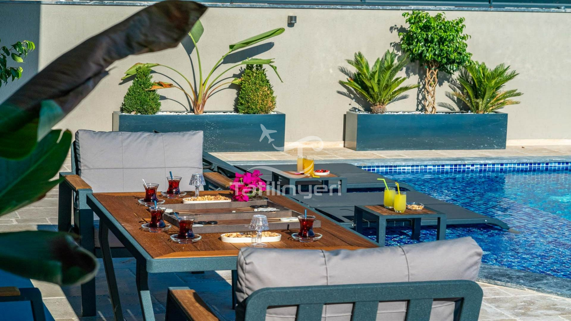 - Havuz ve bahçe bakımları her gün erken saatte görevli tarafından yapılır