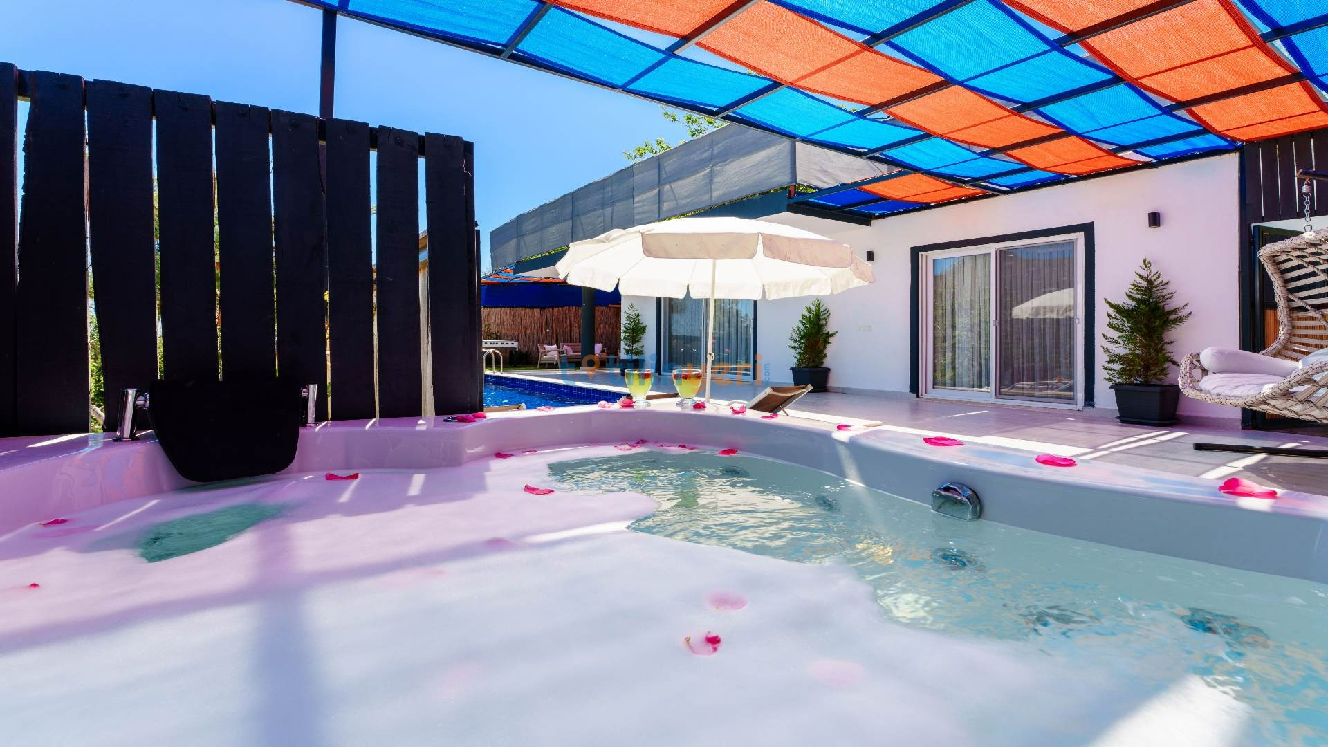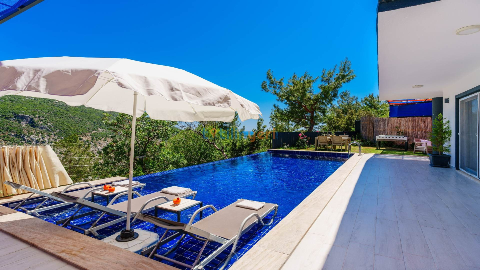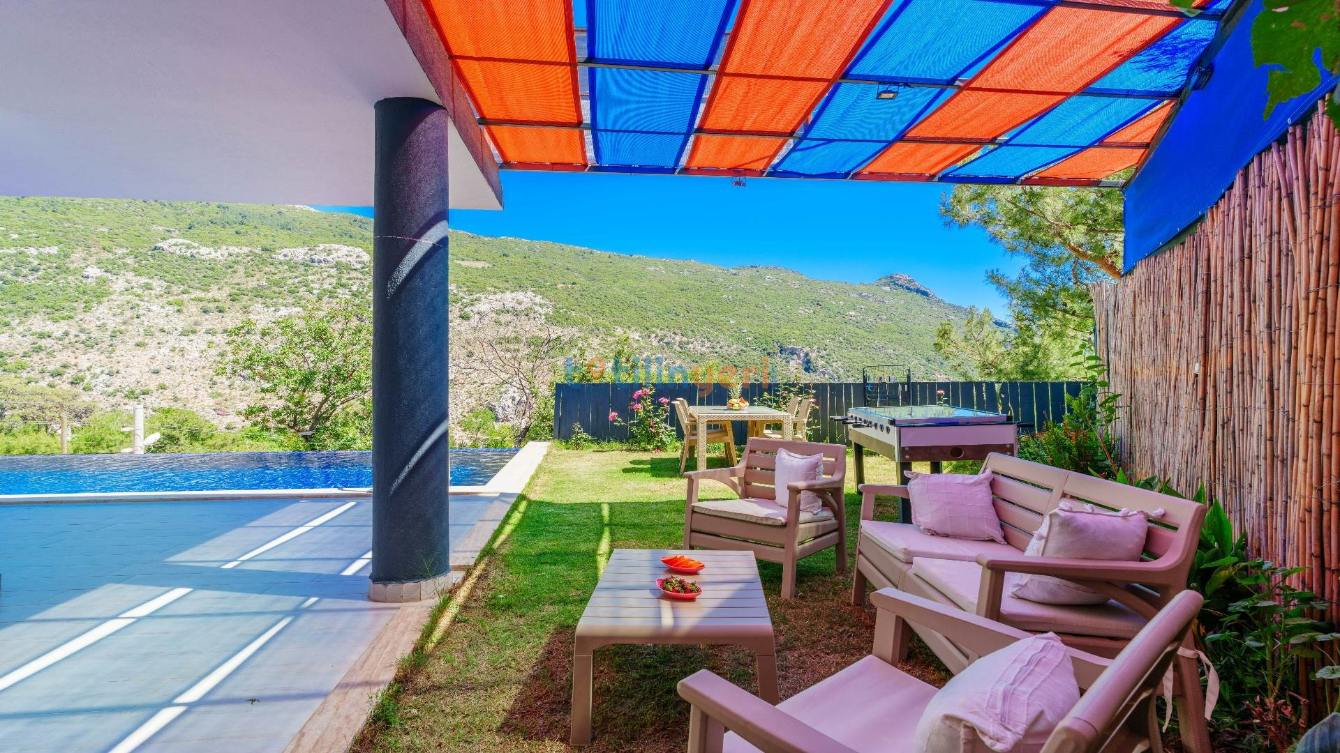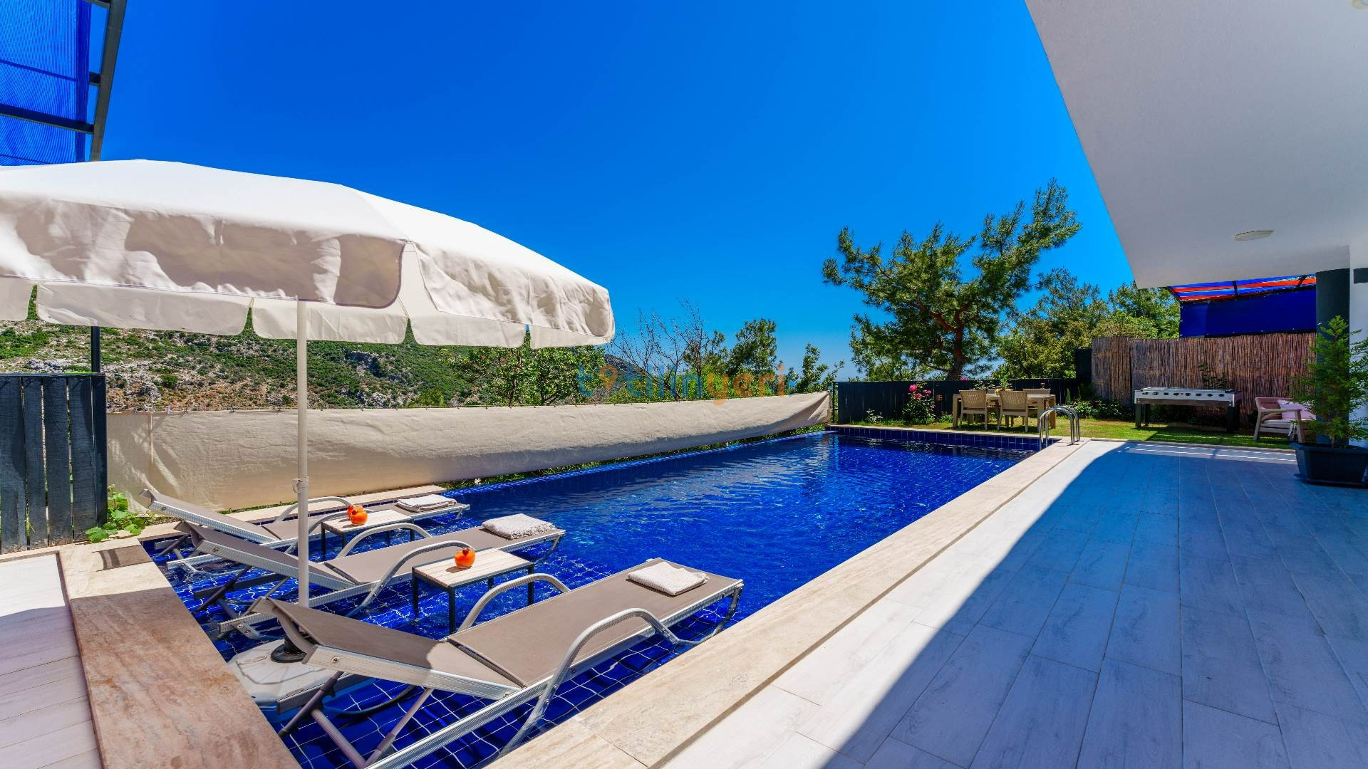 Kalkan İslamlar mevkiisinde konumlanmış kiralık balayı villası, huzurlu ve konforlu bir tatil isteyen konuklarımız için en ideal seçeneklerden bir tanesidir. Villamız muhafazakar villalar ve balayı villaları kategorisinde yer almaktatıdir. 2 yatak odası ile 4 kişiye kadar konaklama imkanını sizlere sunmaktadır. Bahçesinde bulunan jakuzisi ve sinema alanı ile sizlere unutumaz bir tatil deneyimi için Villa Blassom siz değerli misafirlerimizi beklemekte. Havuzu korunaklı (Havuzun dışarıdan gözükmediği anlamına gelir) özelliği ile mahremiyete önem veren misafirlerimiz için tatil imkanı sunmaktadır.