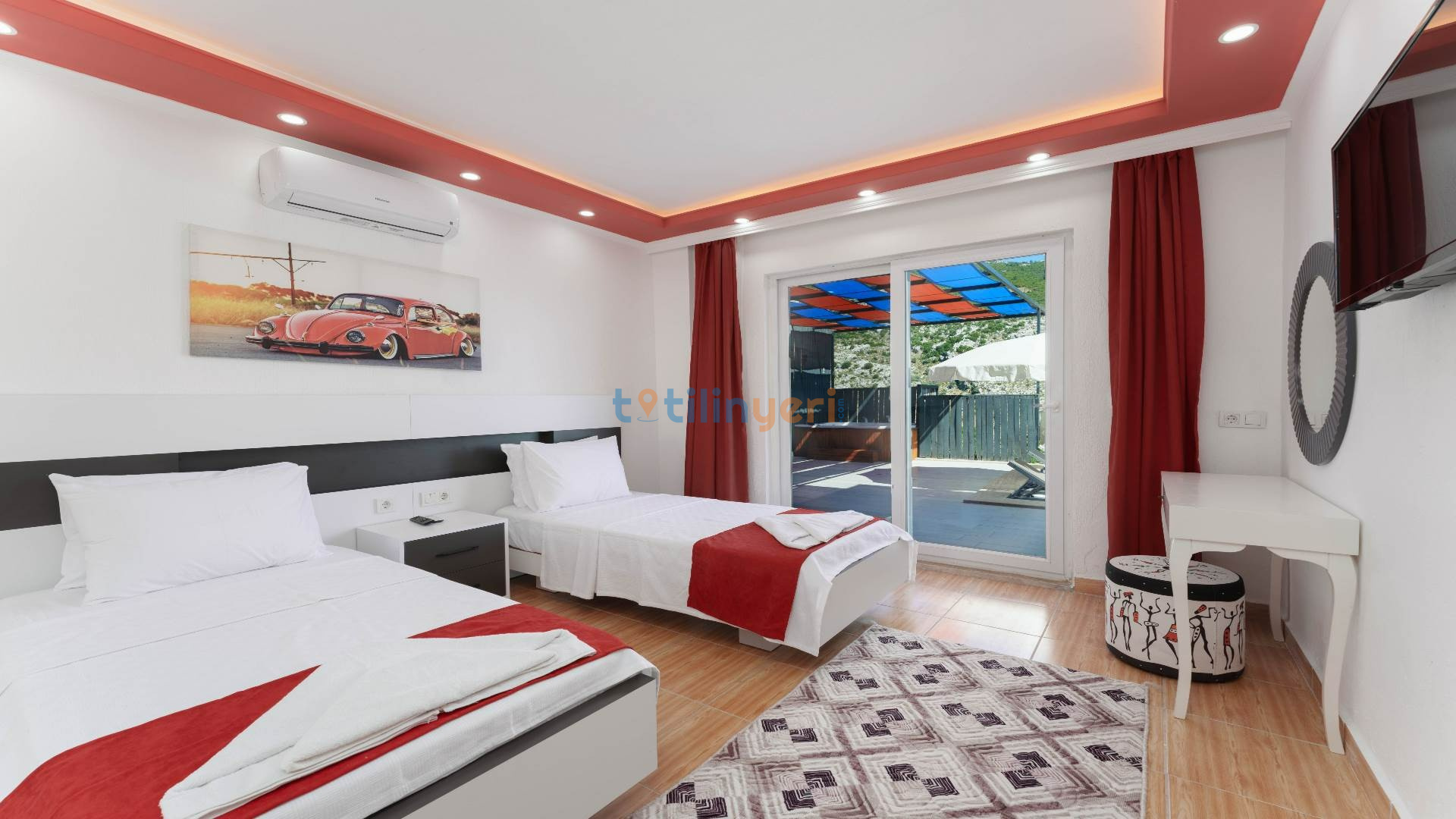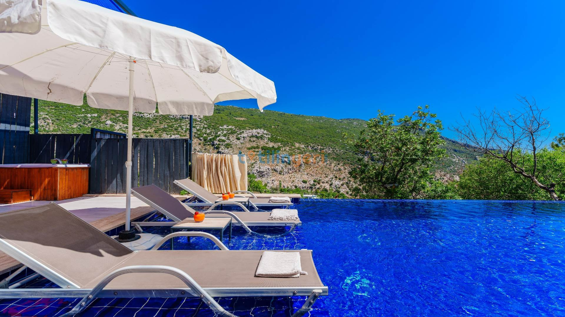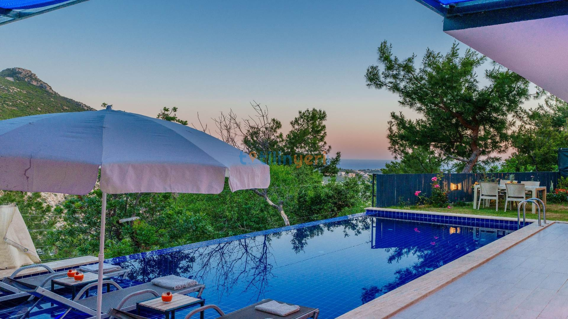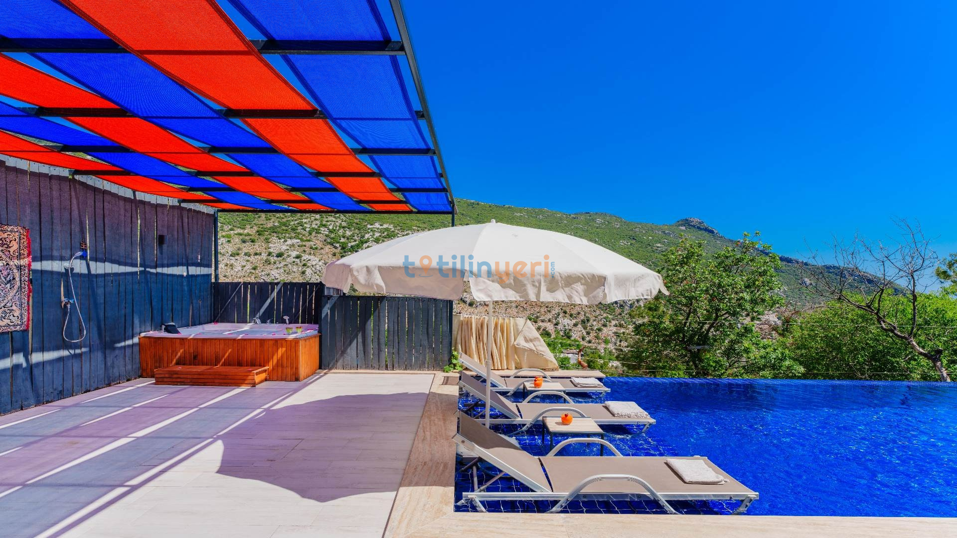 Kalkan İslamlar mevkiisinde konumlanmış kiralık balayı villası, huzurlu ve konforlu bir tatil isteyen konuklarımız için en ideal seçeneklerden bir tanesidir. Villamız muhafazakar villalar ve balayı villaları kategorisinde yer almaktatıdir. 2 yatak odası ile 4 kişiye kadar konaklama imkanını sizlere sunmaktadır. Bahçesinde bulunan jakuzisi ve sinema alanı ile sizlere unutumaz bir tatil deneyimi için Villa Blassom siz değerli misafirlerimizi beklemekte. Havuzu korunaklı (Havuzun dışarıdan gözükmediği anlamına gelir) özelliği ile mahremiyete önem veren misafirlerimiz için tatil imkanı sunmaktadır.