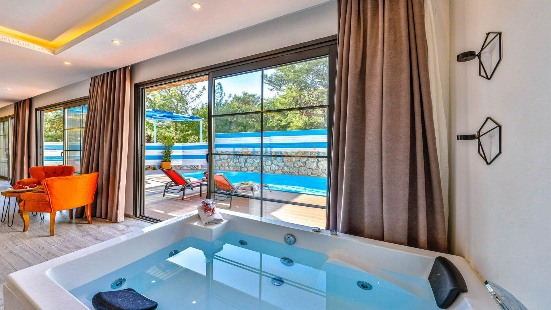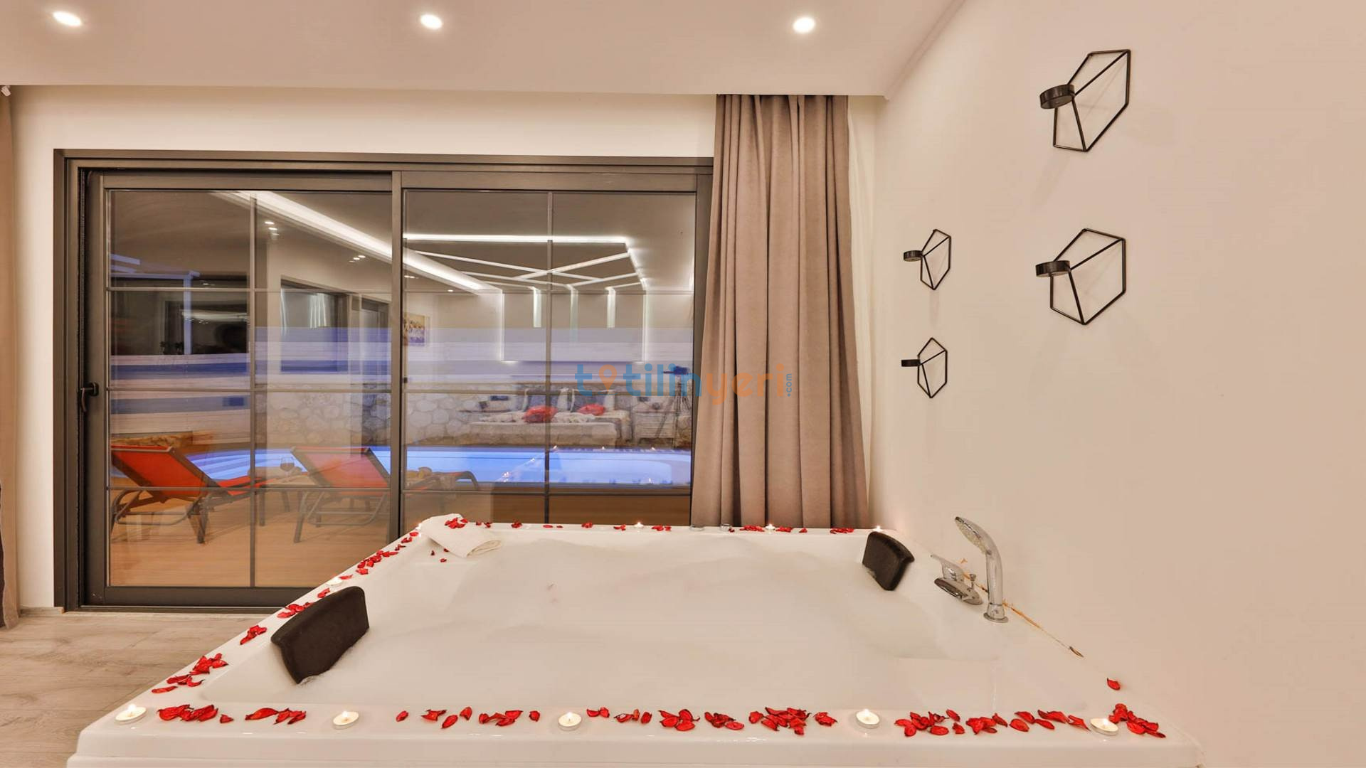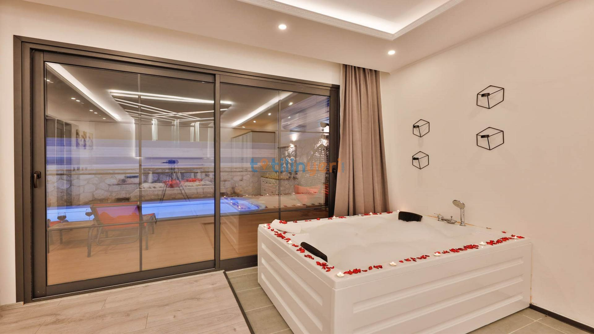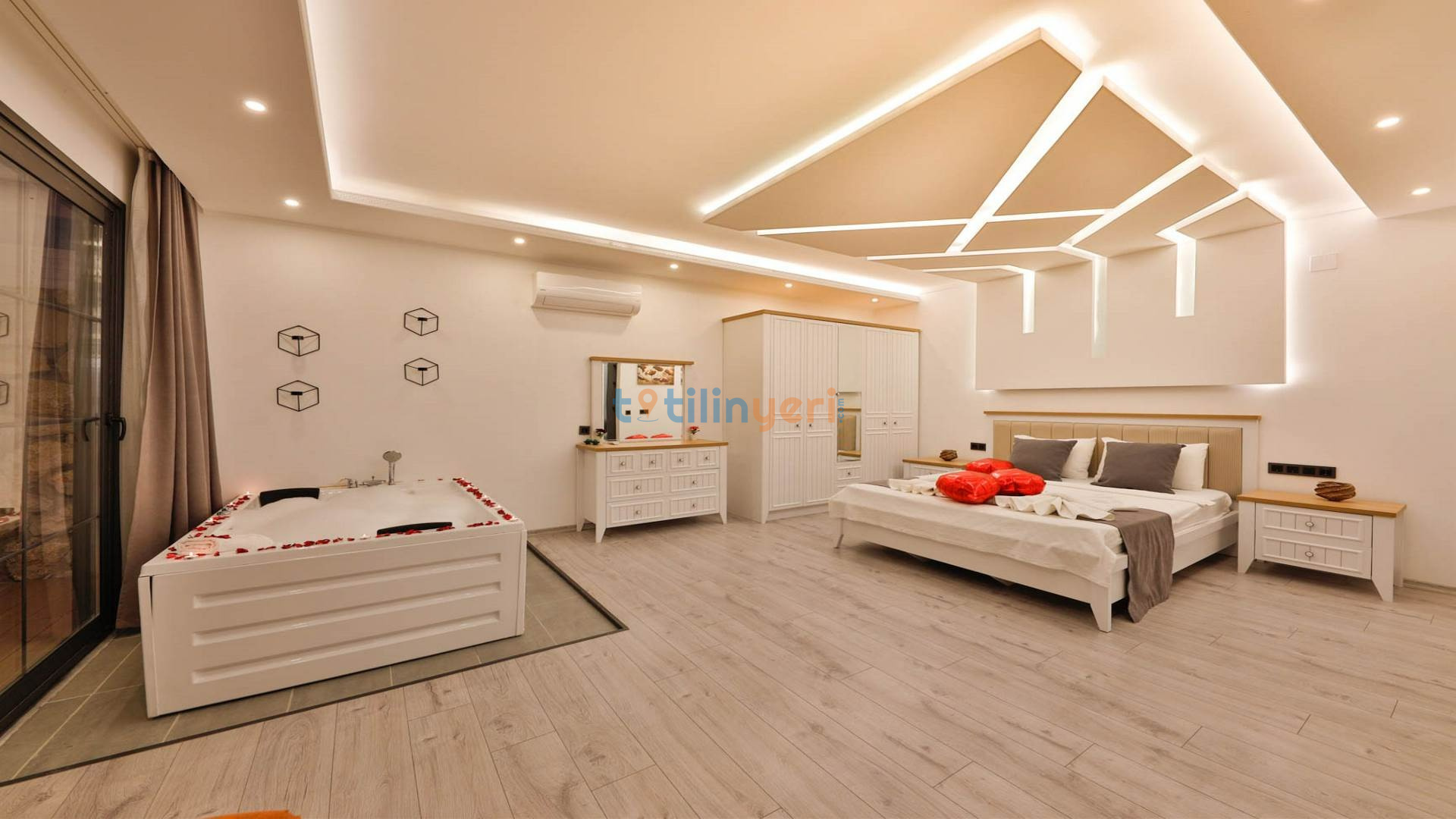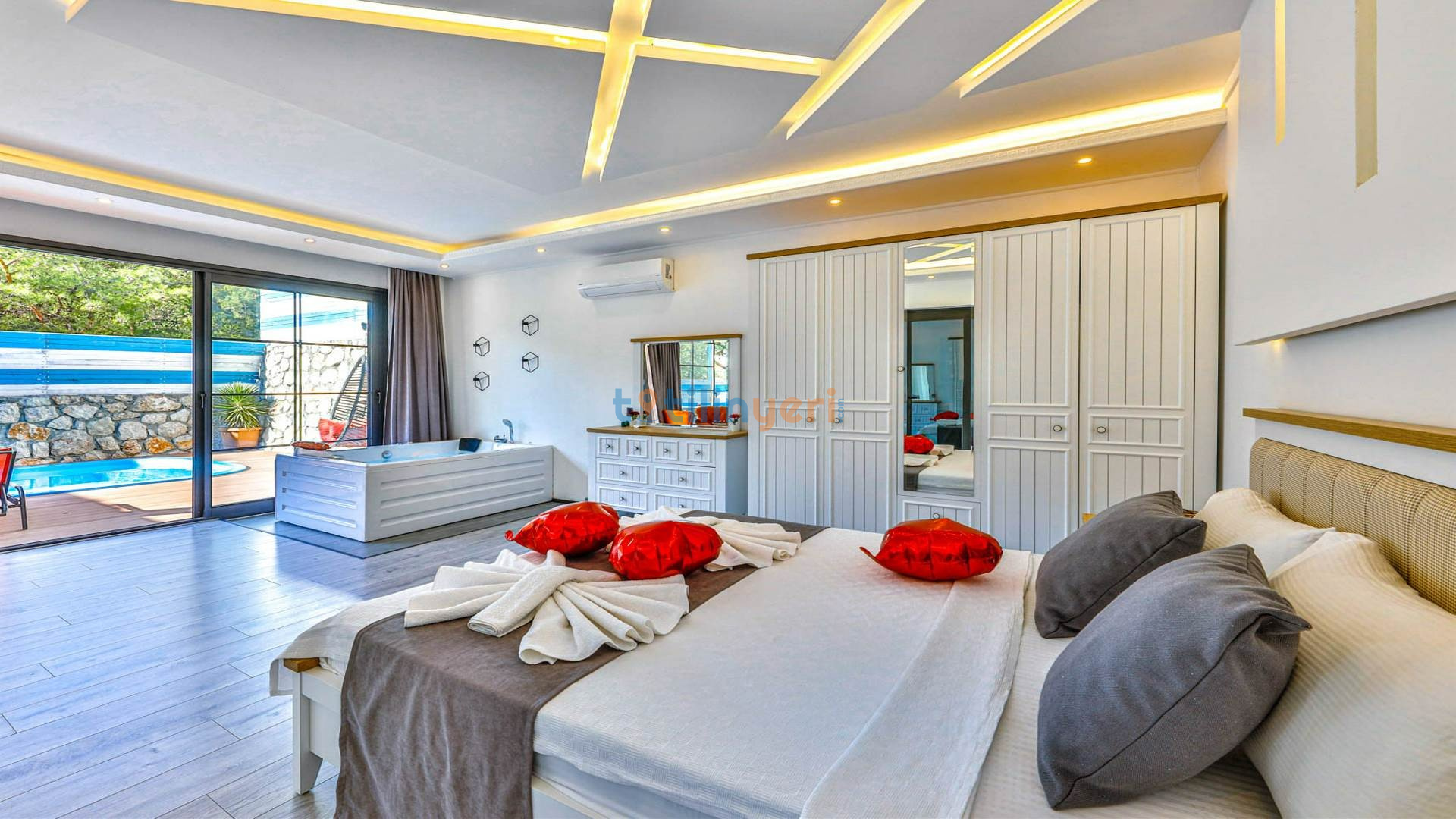 - Çift Kişilik Jakuzi: Lüks ve konforlu bir tatil için jakuzi.
