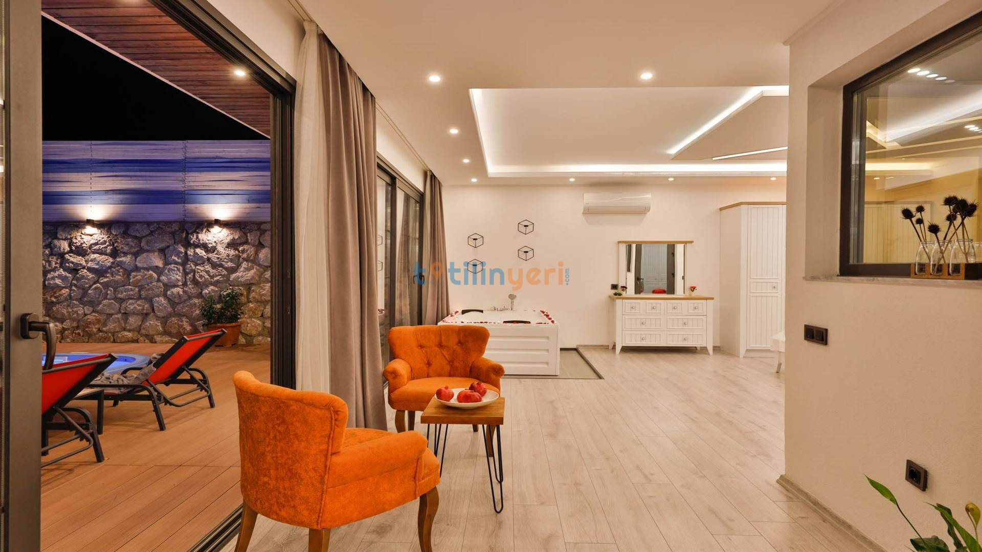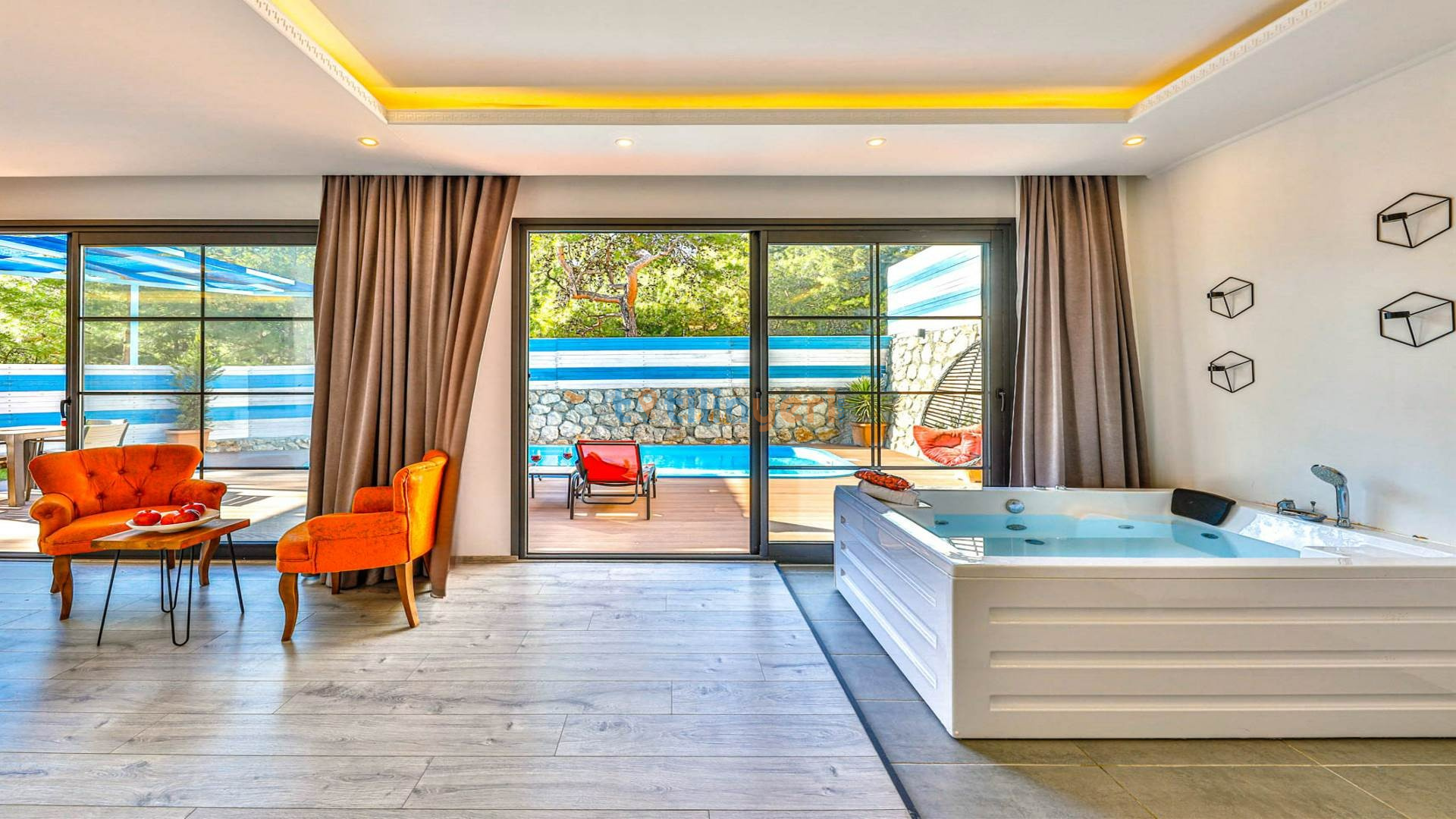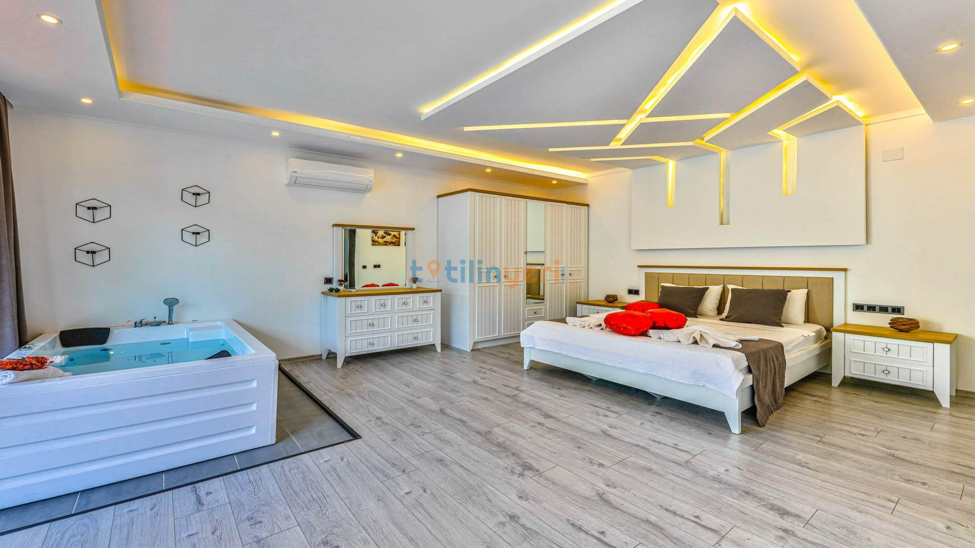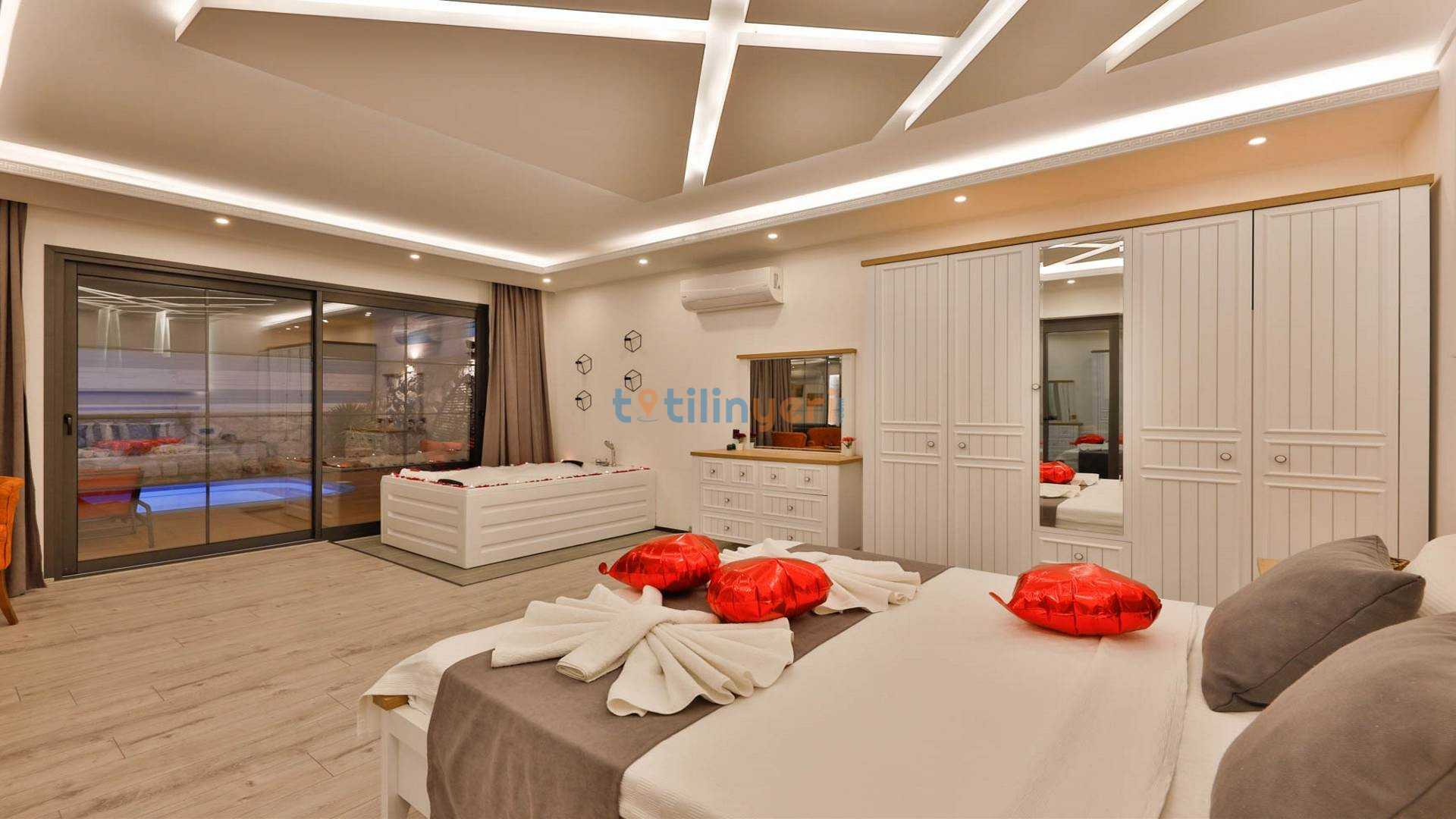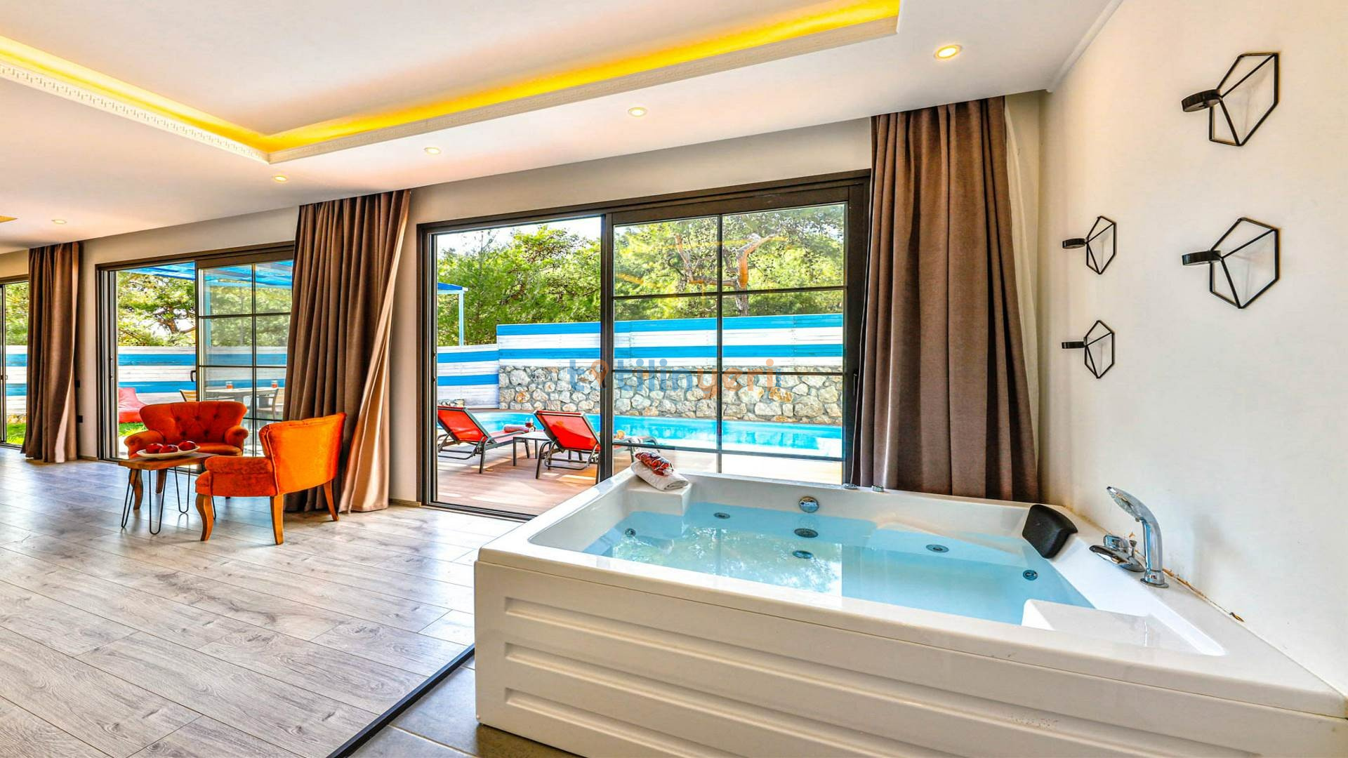 - Çift Kişilik Jakuzi: Lüks ve konforlu bir tatil için jakuzi.
