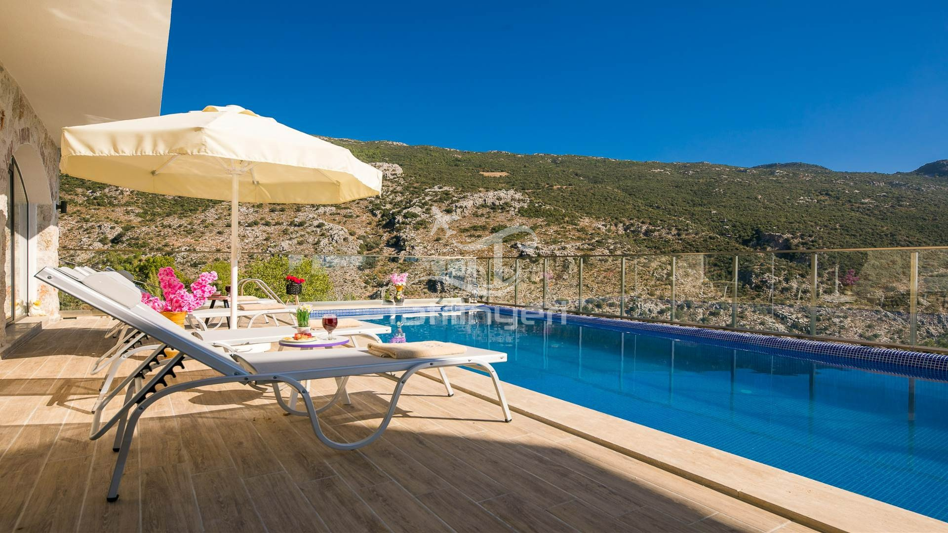 Villa Chiron 10; Antalya'nın en gözde tatil yerlerinden biri Kalkan beldesinin İslamlar bölgesinde bulunmaktadır. Mimari taş yapısı özel olarak tasarlanmış 10 binadan oluşan site içerisindedir. Bahçesi özel olarak tasarlanmış villamızda doğanın huzurunda tadını çıkaracaksınız. Ultra lüx villalarımızdandır. Muhteşem manzarası sizlere unutulmaz tatil yaşatacaktır. Jakuzisi bulunmaktadır. Havuzları özel tasarlanan villamızda 2 adet havuz bulunmaktadır. Kapalı ısıtmalı havuzu bulunmaktadır. Isıtmalı havuzlu villalarımızda kış aylarında havuza girebilirsiniz. Yaz kış size eksiksiz tatil imkanı sunmaktadır. Uyandığınızda muhteşem bir manzaraya gözlerinizi açacaksınız. Huzurun adresi diyebileceğiniz villa seçeneği. Kendine ait özel havuzu bulunan villamız havuzu dışarıdan görünmemektedir.