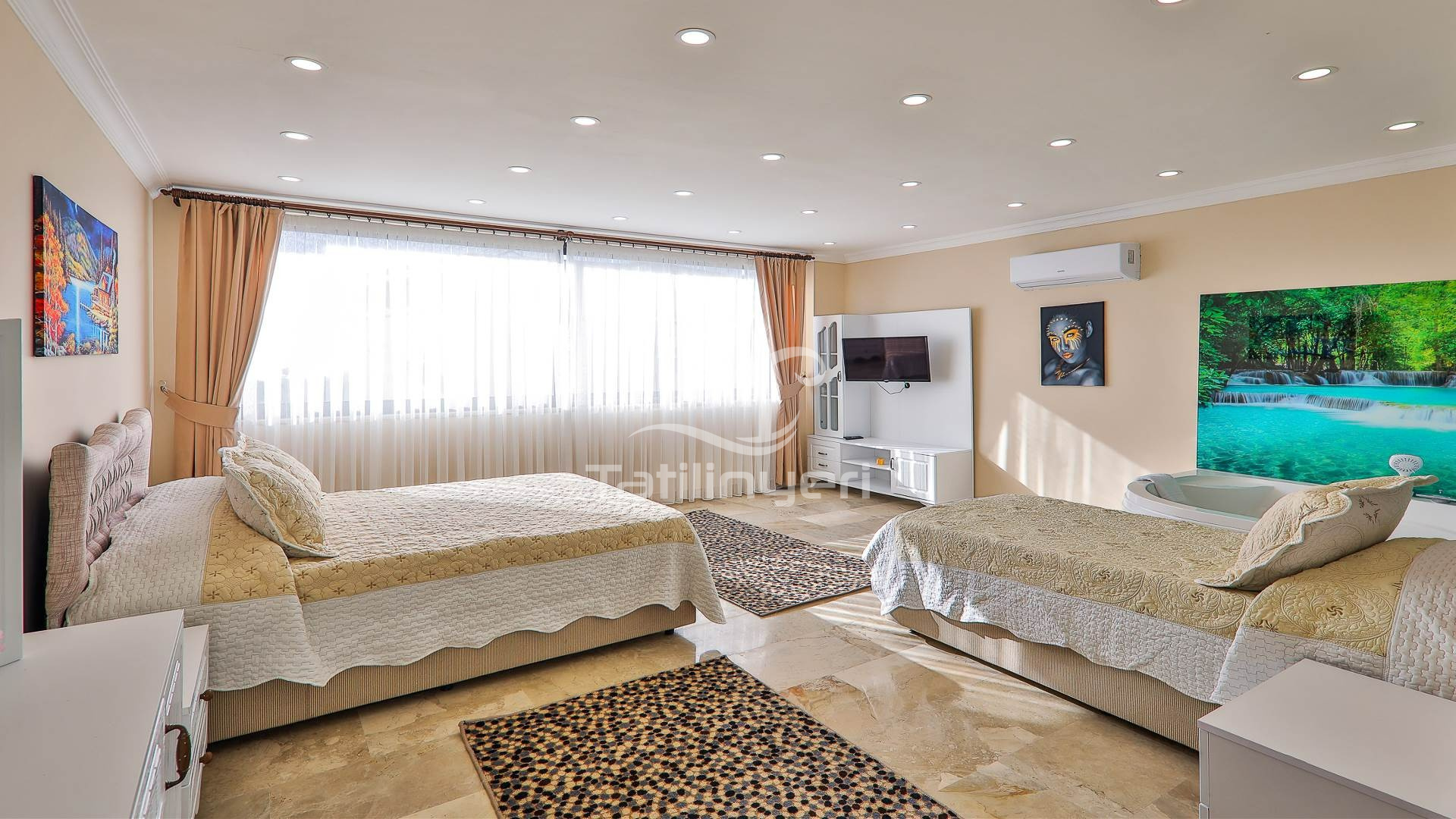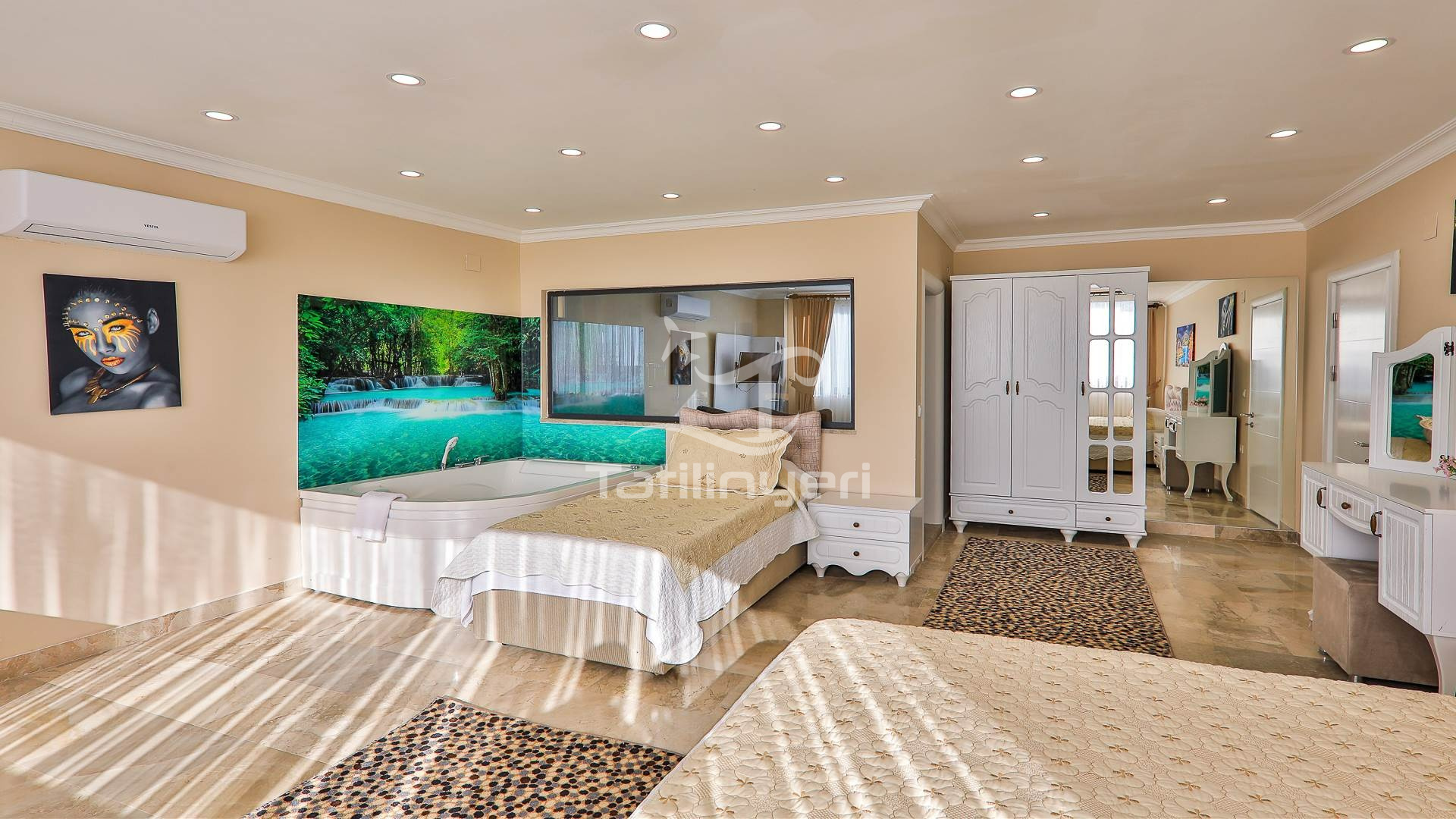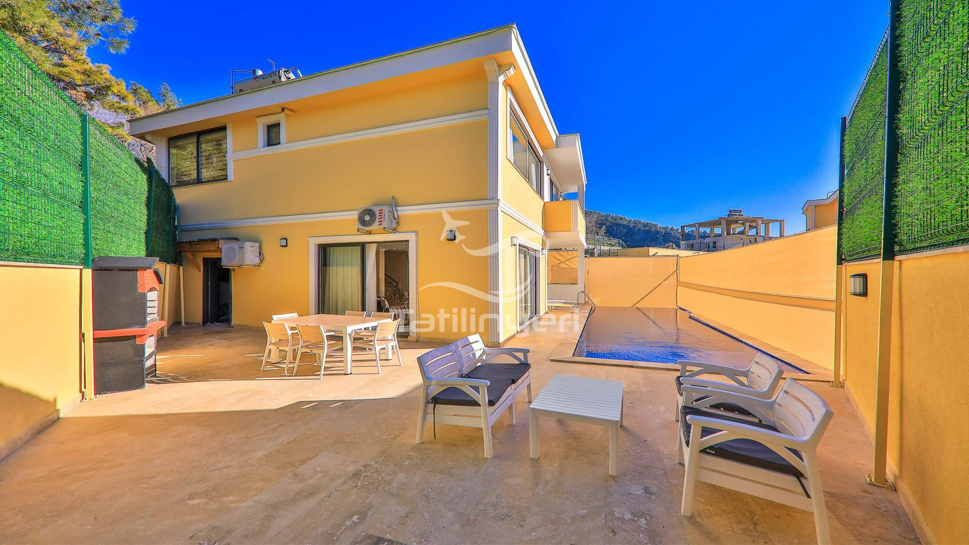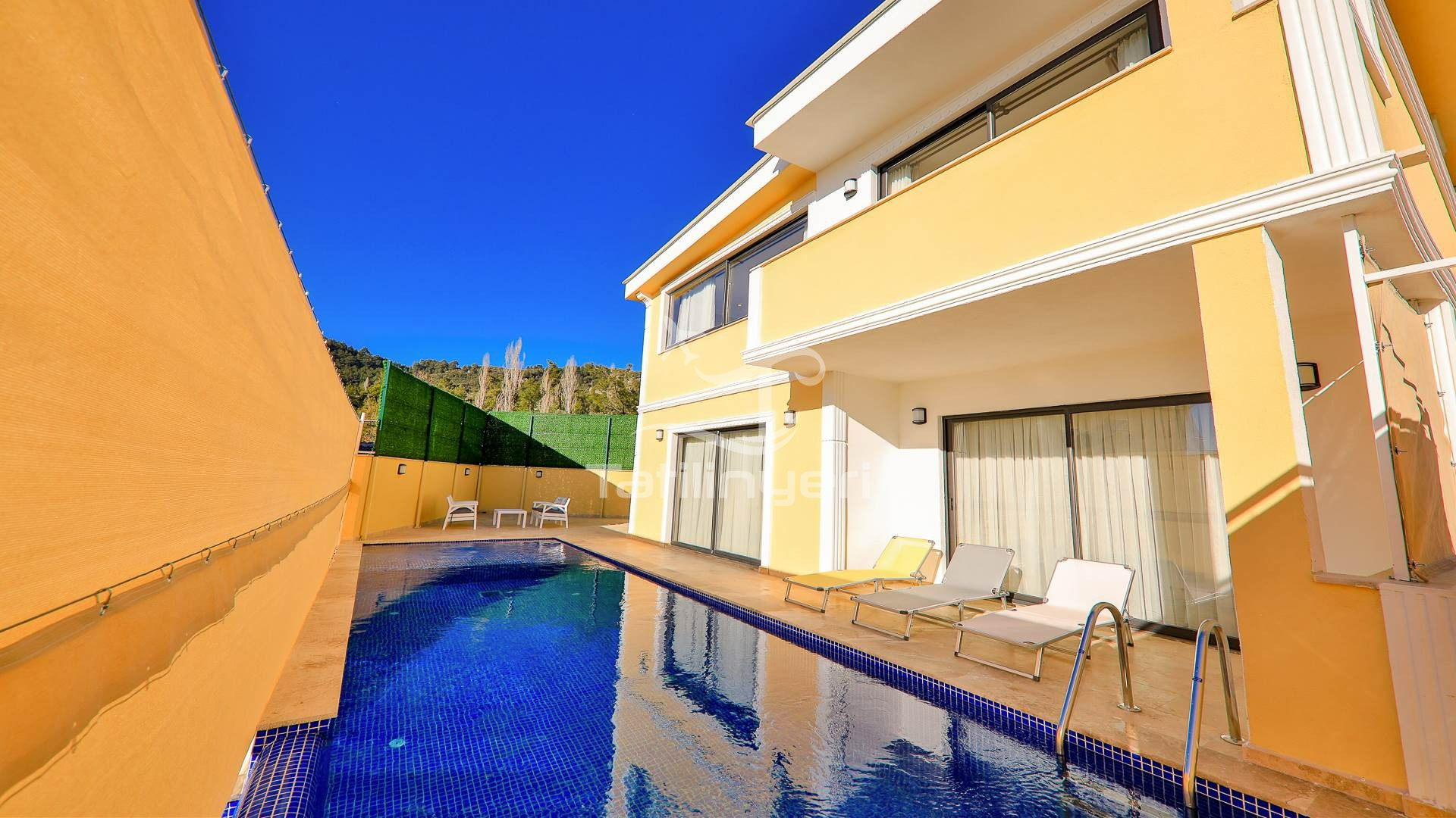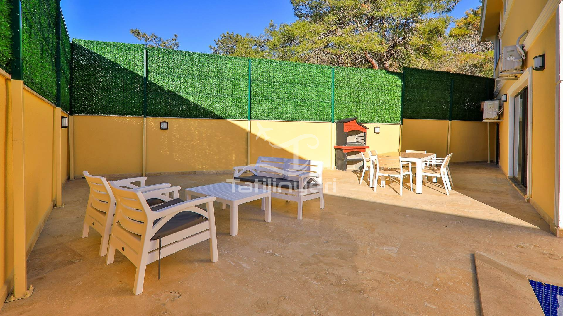 Villa Doğa Ihlamur Kiralık yazlık villamız İslamlar mevkisin de konumlanmıştır. 2 yatak odalı 5 kişilik kapasiteye sahiptir. Villa Ihlamur doğa içerisinde sakin sessiz huzurlu bir villadır. Tüm eşyaları lüks dizayn edilmiştir. Özel Yüzme havuzu ve havuz terası muhafazakar aileler özel kapatılmıştır. Süit yatak odasın bir adet jakuzi bulunmaktadır. Balayı villası olarak ta tercih edilmektedir. Çekirdek ailelere uygun olarak diğer yatak odasında kendine ait tuvalet banyo bulunmaktadır. Villamızın kış için kendine ait kapalı ısıtmalı havuzu bulunmaktadır. Her odasında televizyon bulunmaktadır.