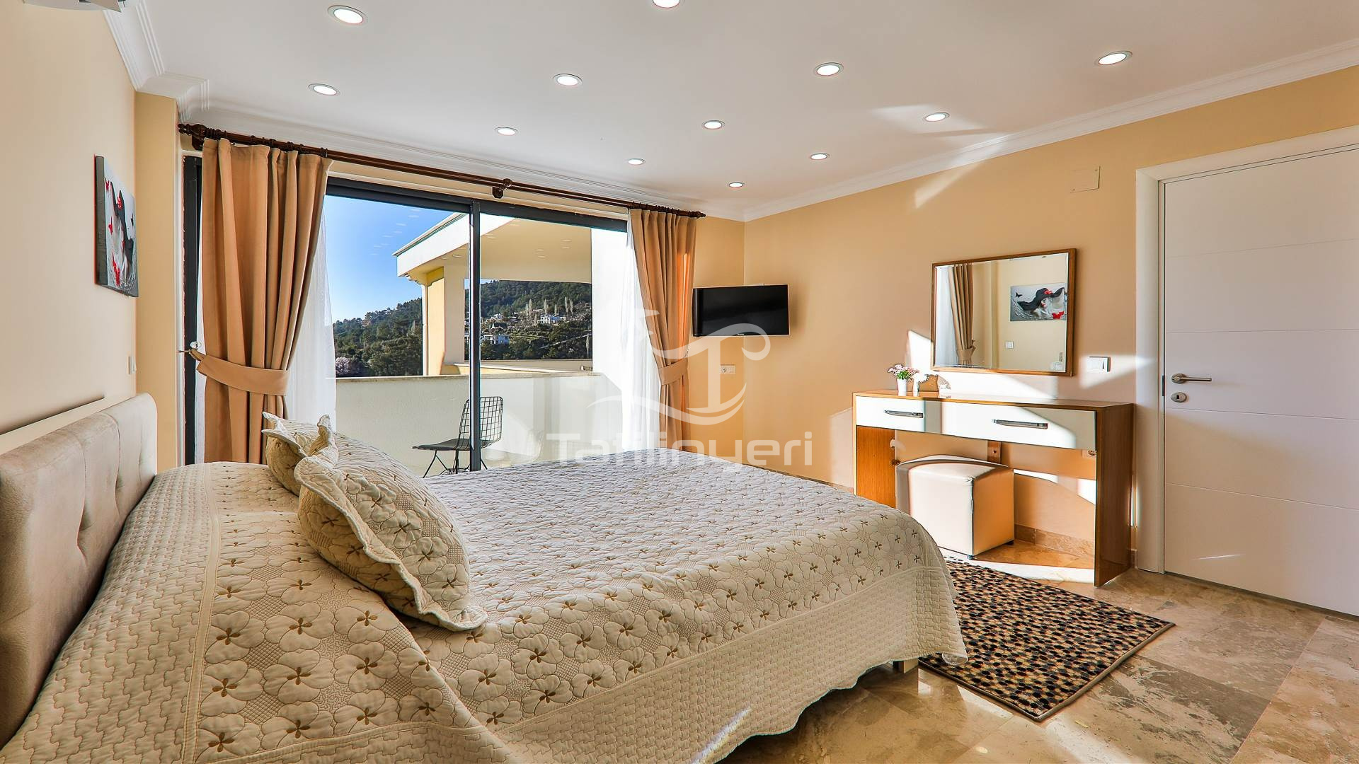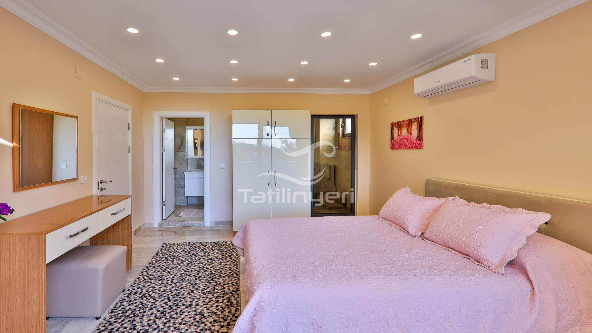Villa Doğa Meşe, Kalkan İslamlar Köyünde yer alan 11 kişi kapasiteli tatil villamızdır. İsteğe bağlı olarak 12 kişi olarak misafir kabul edilmekte olup, villa sahibi ek yatak imkanı sağlamaktadır. Villamızda 5 yatak odası bulunmaktadır ve her yatak odasında wc-banyo mevcuttur. Villamızın 4 yatak odasında çift kişilik yatak ve 5.yatak odasında ise 1 çift kişilik yatak 1 adet tekli yatak bulunuyor.
