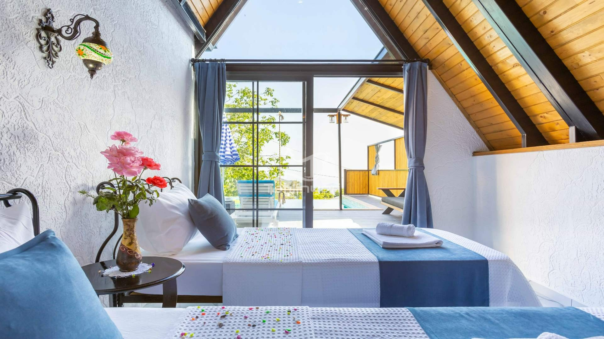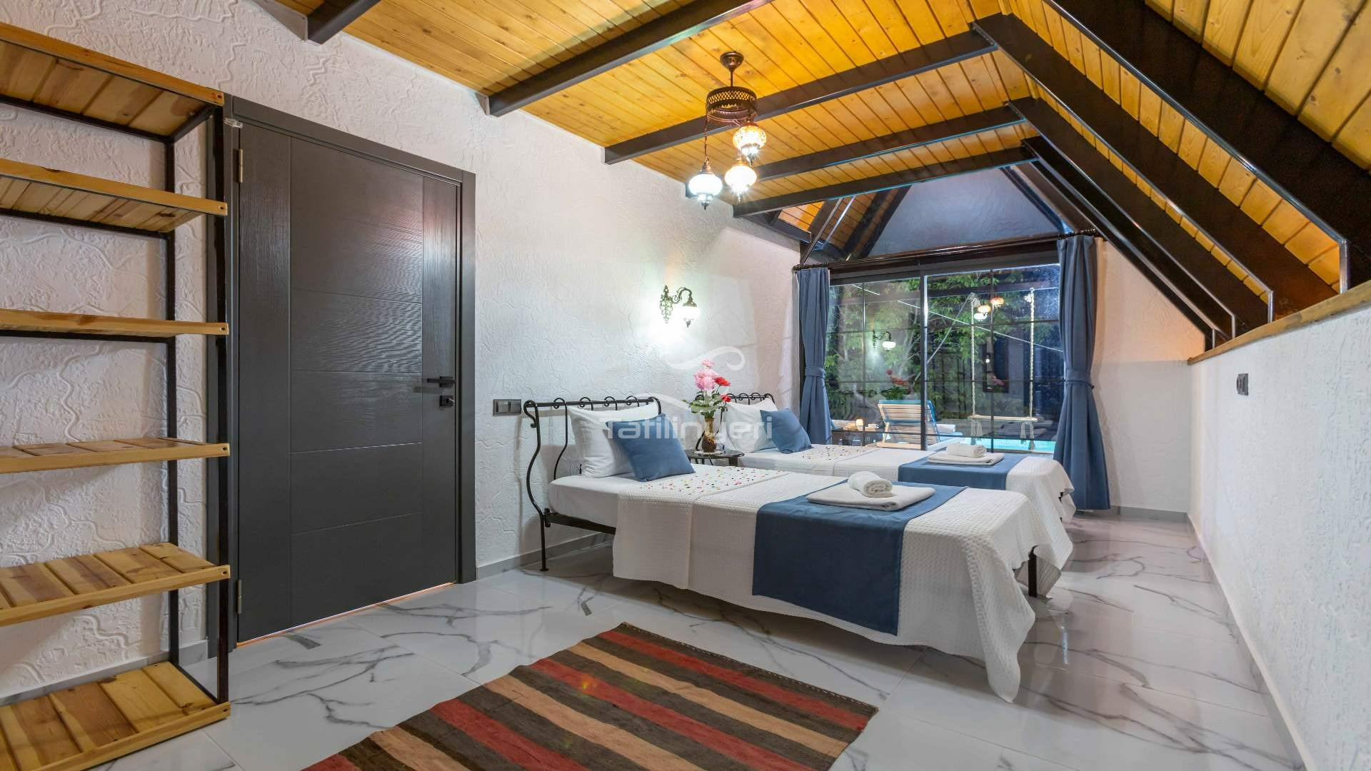 Kalkan İslamlar’da ahşap mimarisi ve özel havuz ile dikkat çeken Villa Hazal , 4 kişilik konaklama kapasitesi ve 2 yatak odasına sahiptir. Modern mimarisi ile çekirdek aileler için uygun olan villamız villa tatili yapmak isteyen misafirlerimiz için de idealdir.