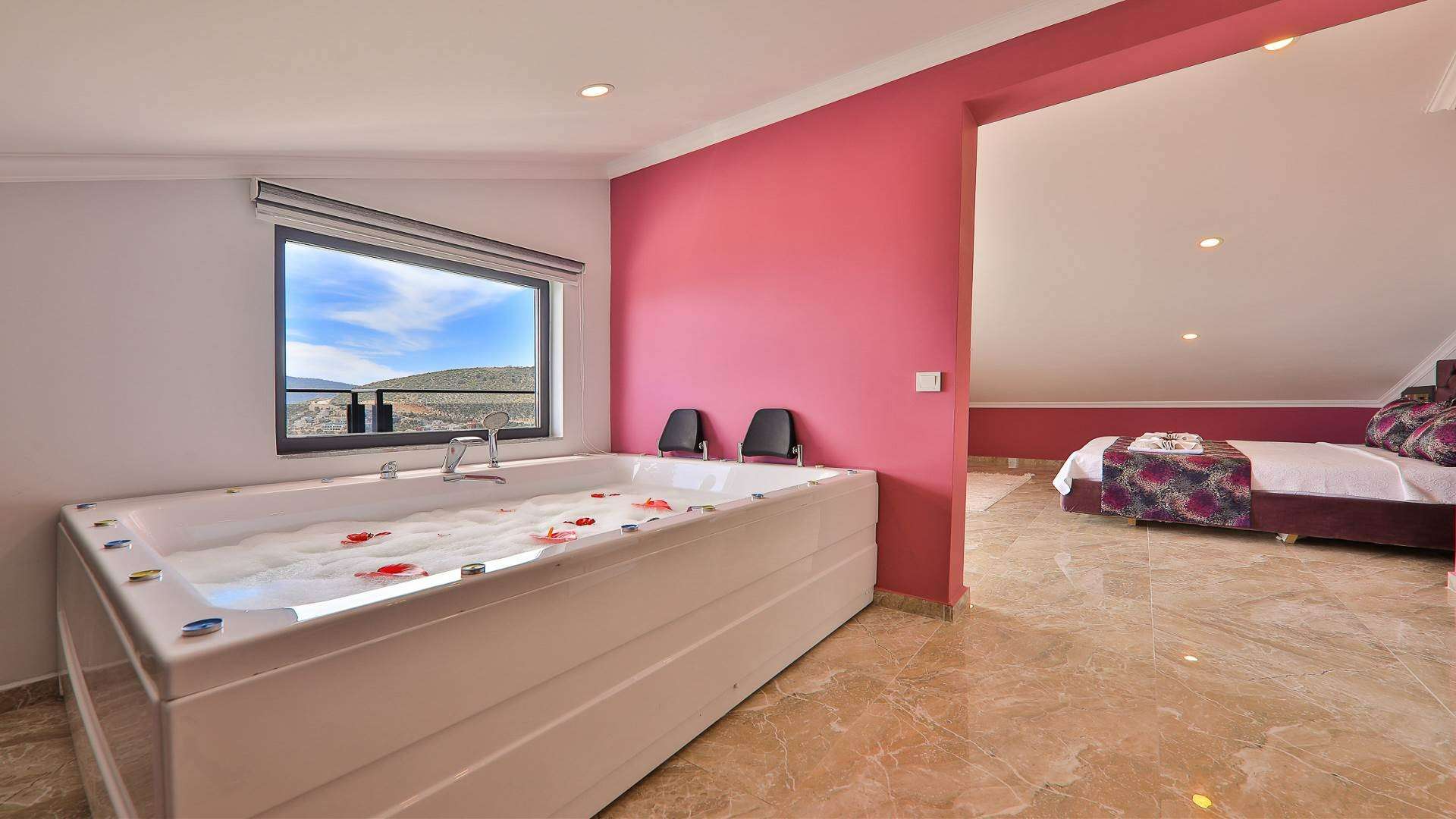 Detayları : Çift kişilik yatak, Elbise dolabı, Makyaj masası, Komodin, Klima, Banyo, TV , Jakuzi, Balkon bulunmaktadır.