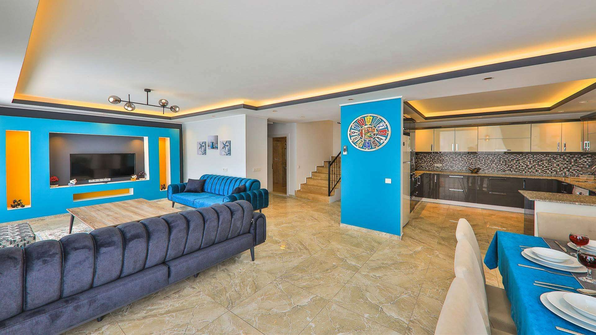 Detayları : Buzdolabı, Bulaşık makinesi, Çamaşır makinesi, Su Sebili , Ekmek Kızartma Makinası , Tost Makinası , Mikrodalga fırın, Fırın, 4’lü Ocak (ankastre), Elektrikli su ısıtıcı, 10 kişilik yemek takımı, Tava, Tencereler, Çatal bıçak vb.