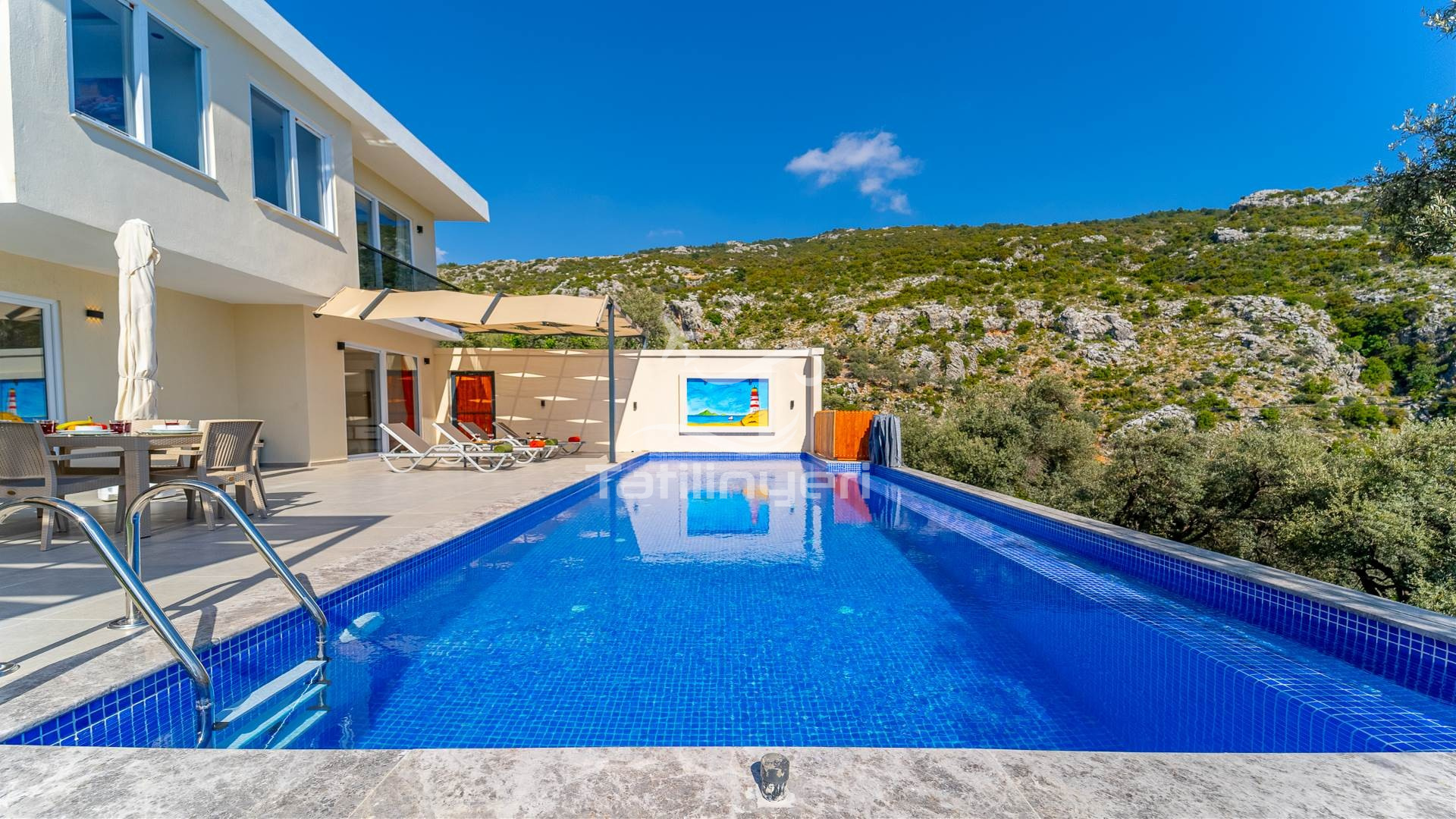 Villa Neonis, Kalkan İslamlar mevkiinde konumlandırılmış olup 2 yatak odalı 4 kişi konaklama kapasitesine sahiptir. Villamızın bahçe alanı ve havuz çevresi dışarıdan görünmemesinden dolayı muhafazakar konseptine uygundur. Muhteşem doğa manzarasına karşı sevdiklerinizle birlikte unutulmaz bir tatil fırsatı sunmaktadır.