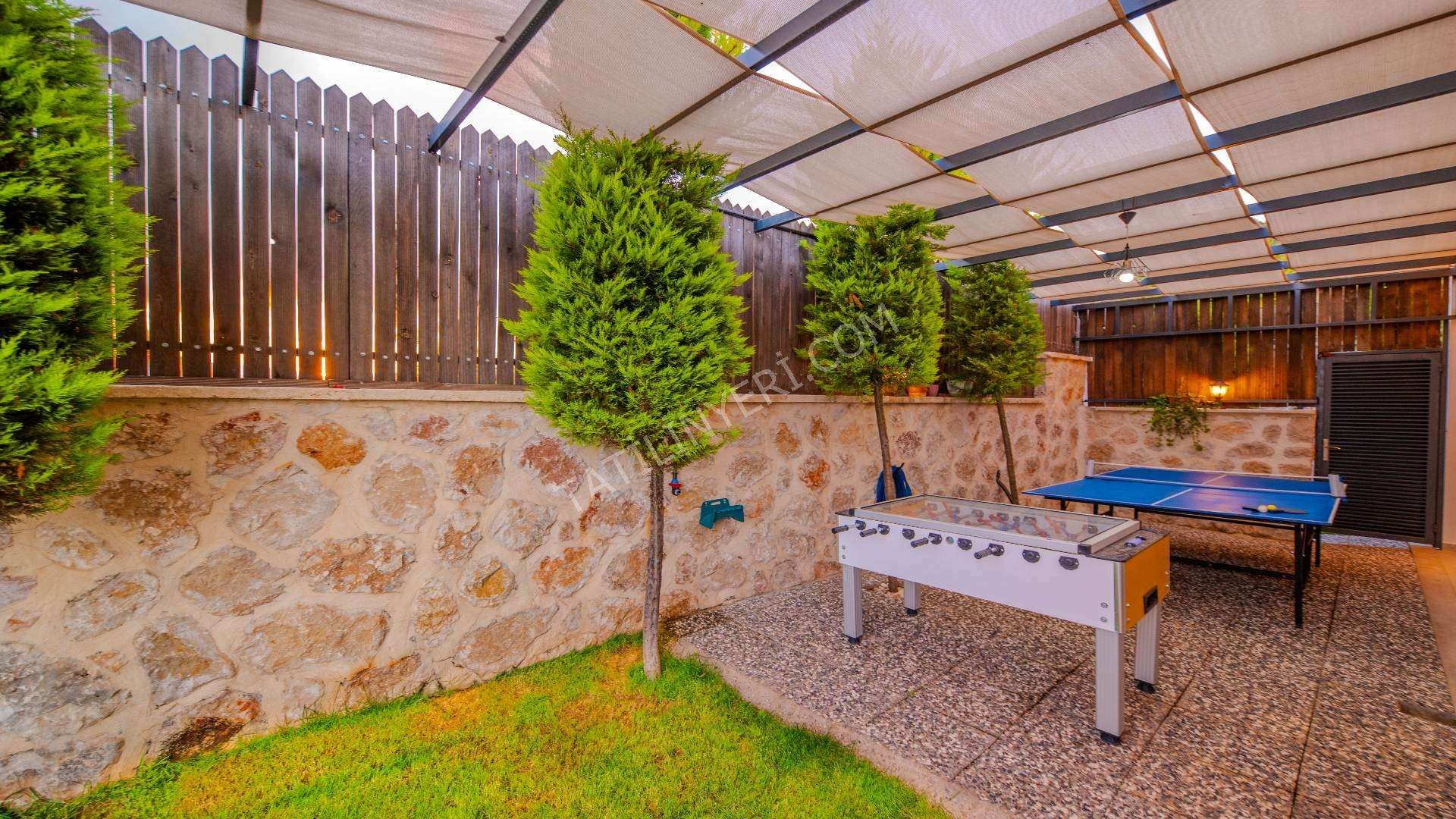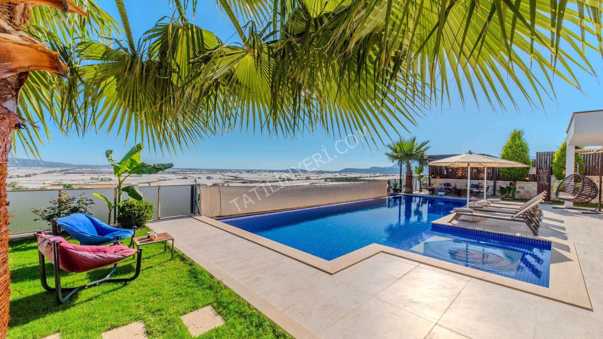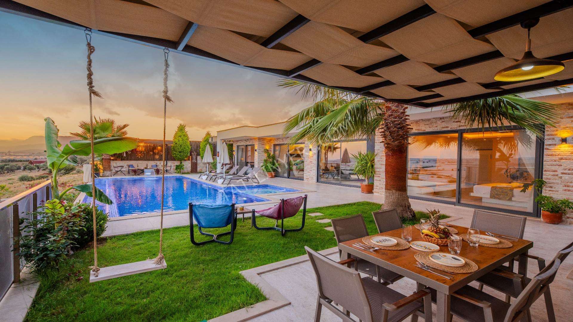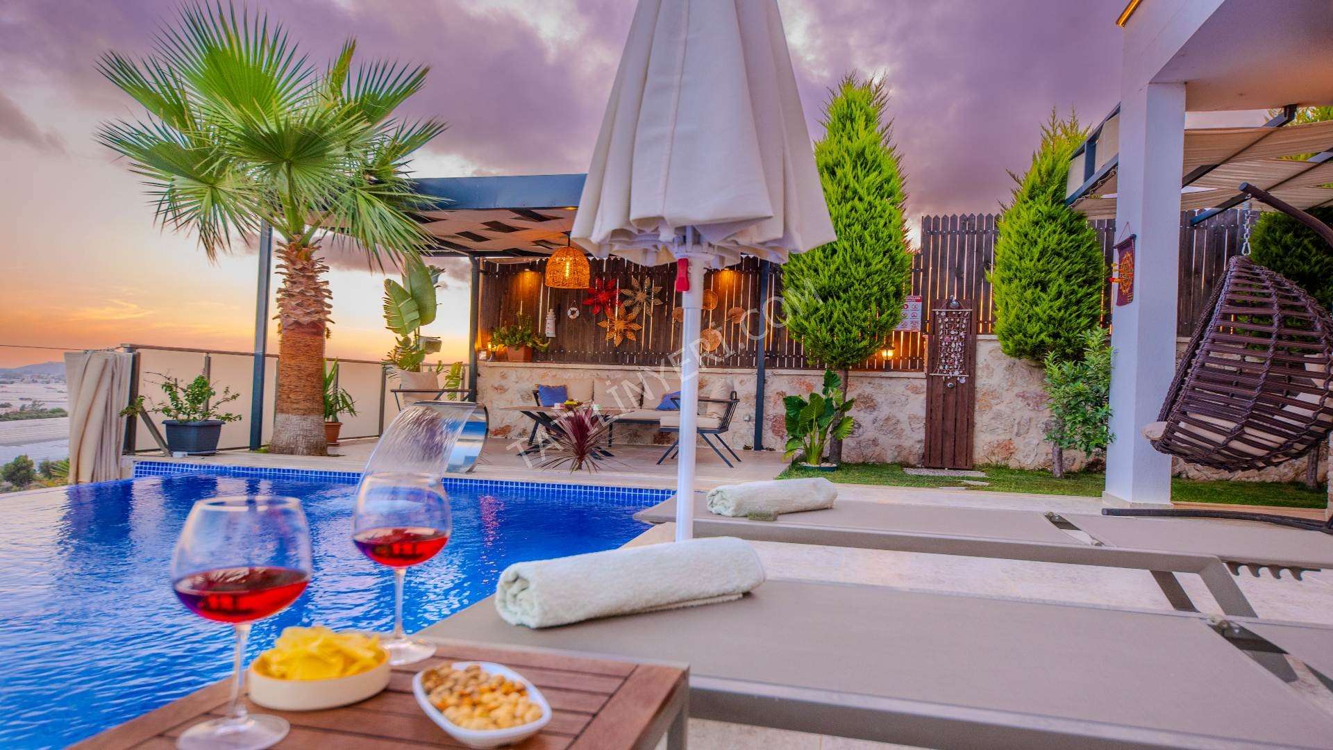 Villanın geniş bir bahçesi, tamamen korunaklı 12x4 metre boyutlarında özel bir havuzu bulunmaktadır. Suit yatak odasında yer alan jakuzi ve sauna, tatilinize ekstra keyif ve rahatlık katar.