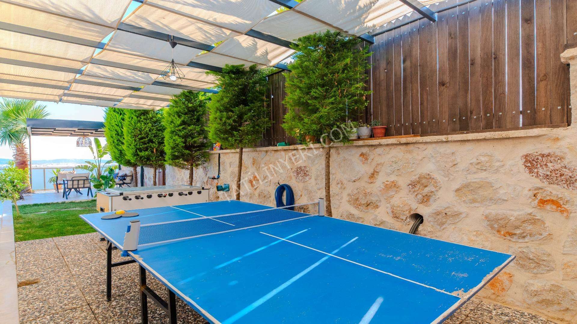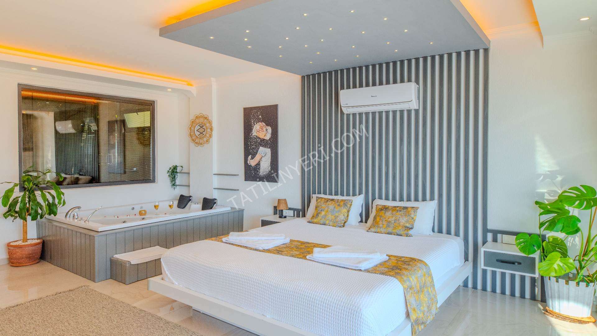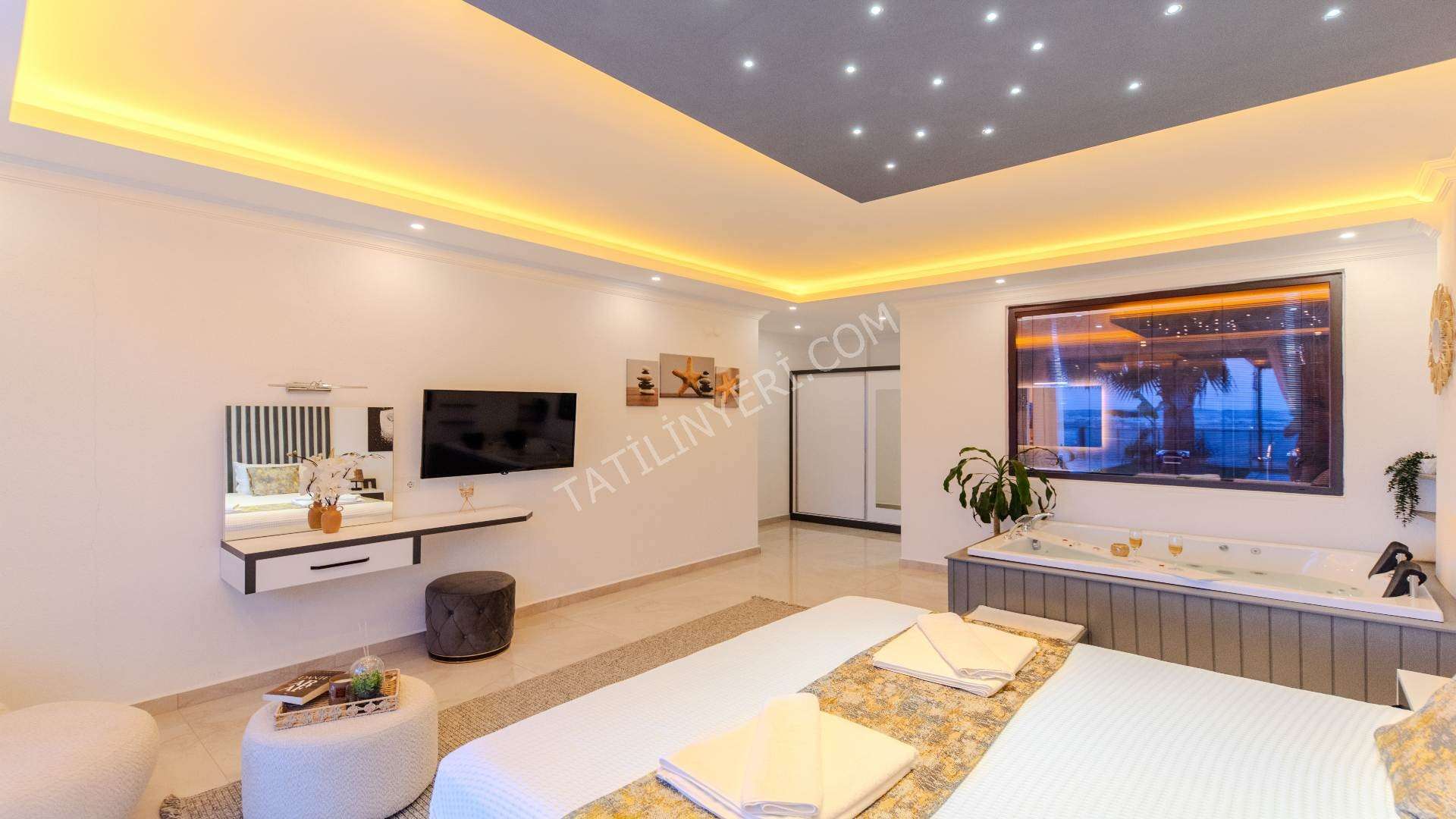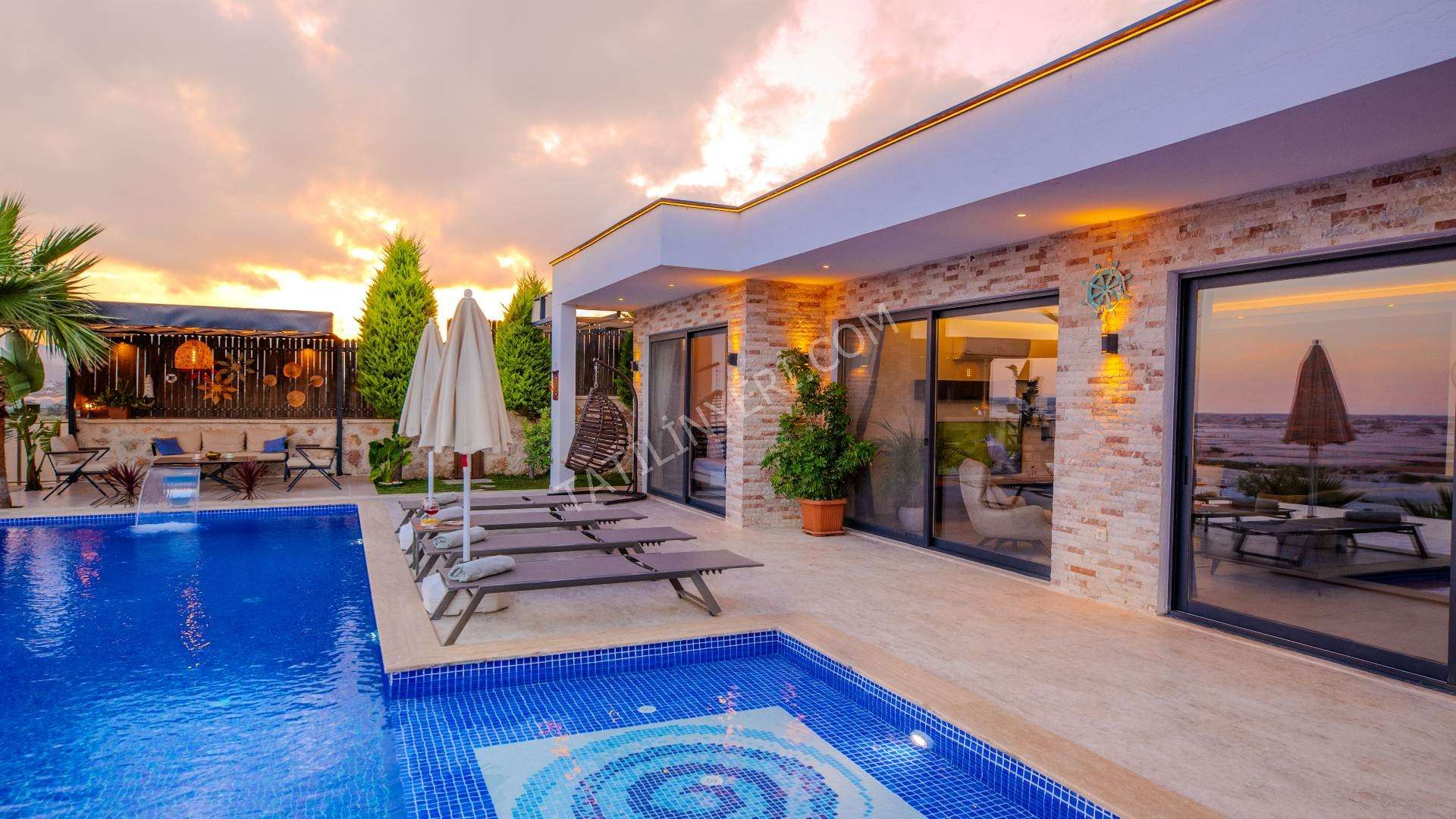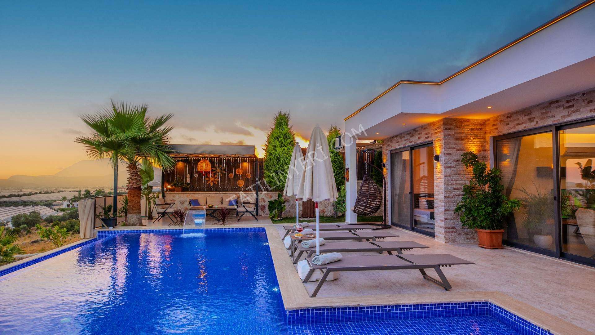 Villanın geniş bir bahçesi, tamamen korunaklı 12x4 metre boyutlarında özel bir havuzu bulunmaktadır. Suit yatak odasında yer alan jakuzi ve sauna, tatilinize ekstra keyif ve rahatlık katar.