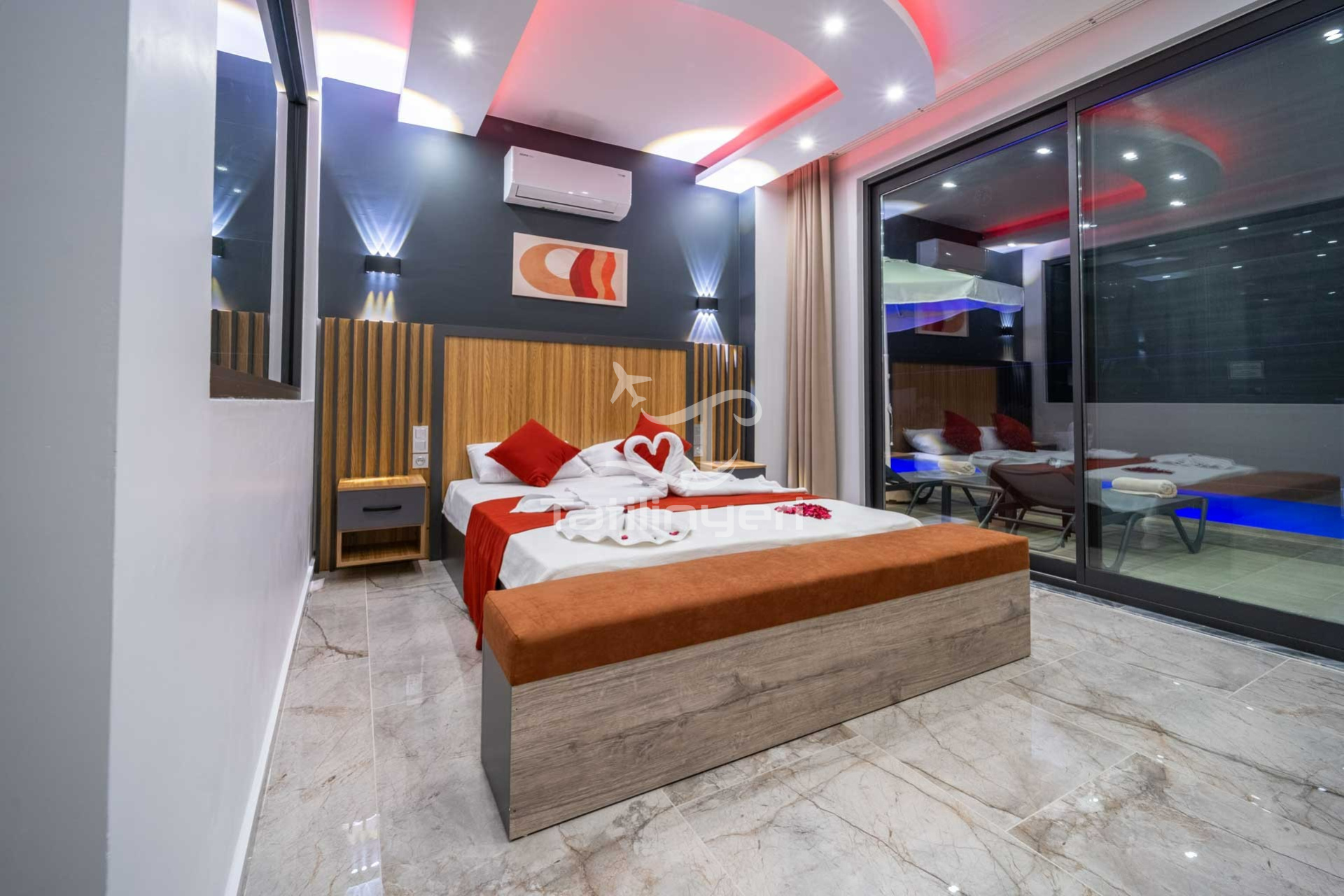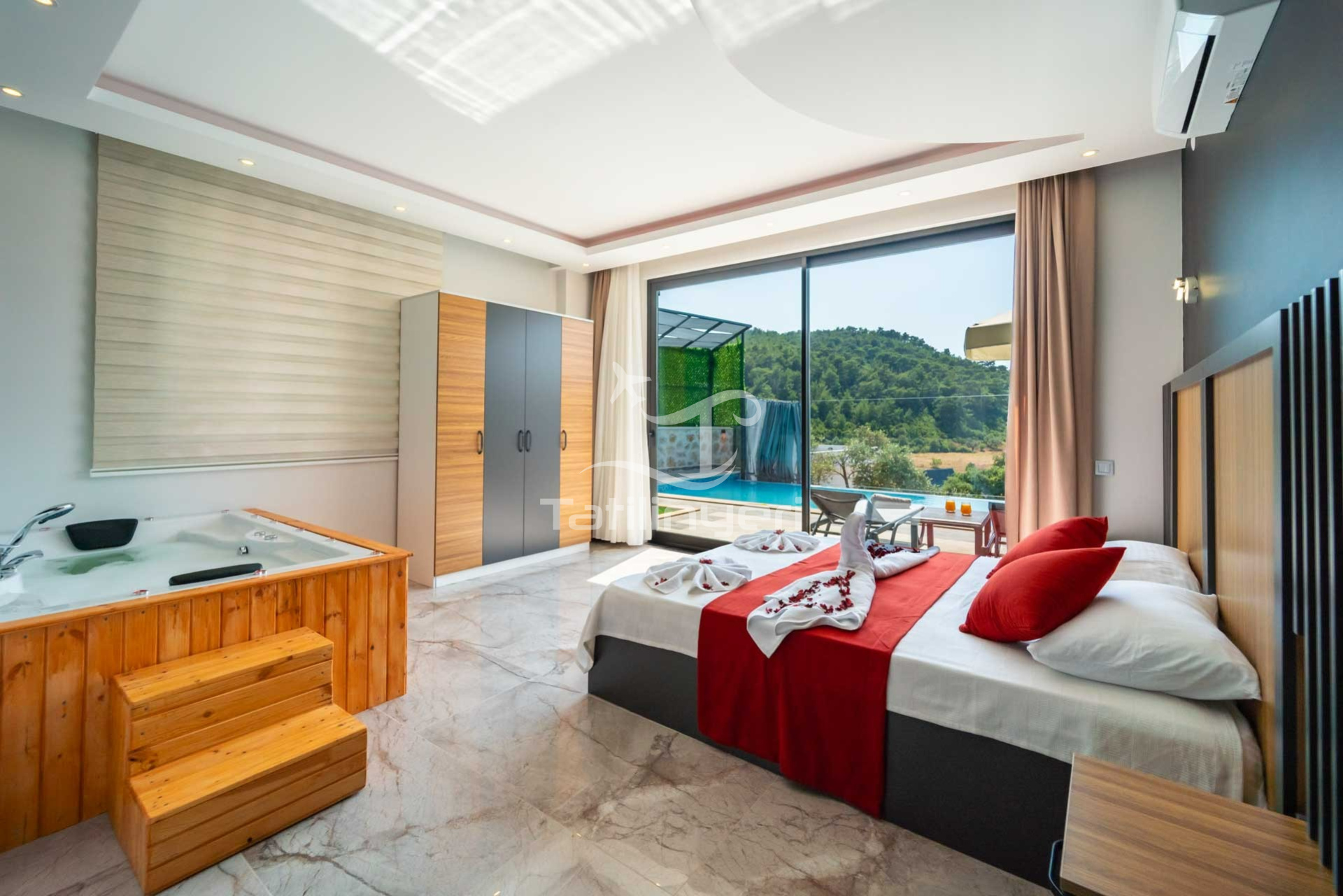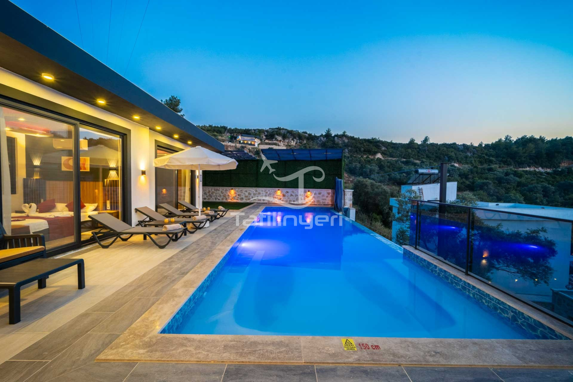 - Havuz ve bahçe bakımları her gün erken saatte görevli tarafından yapılır