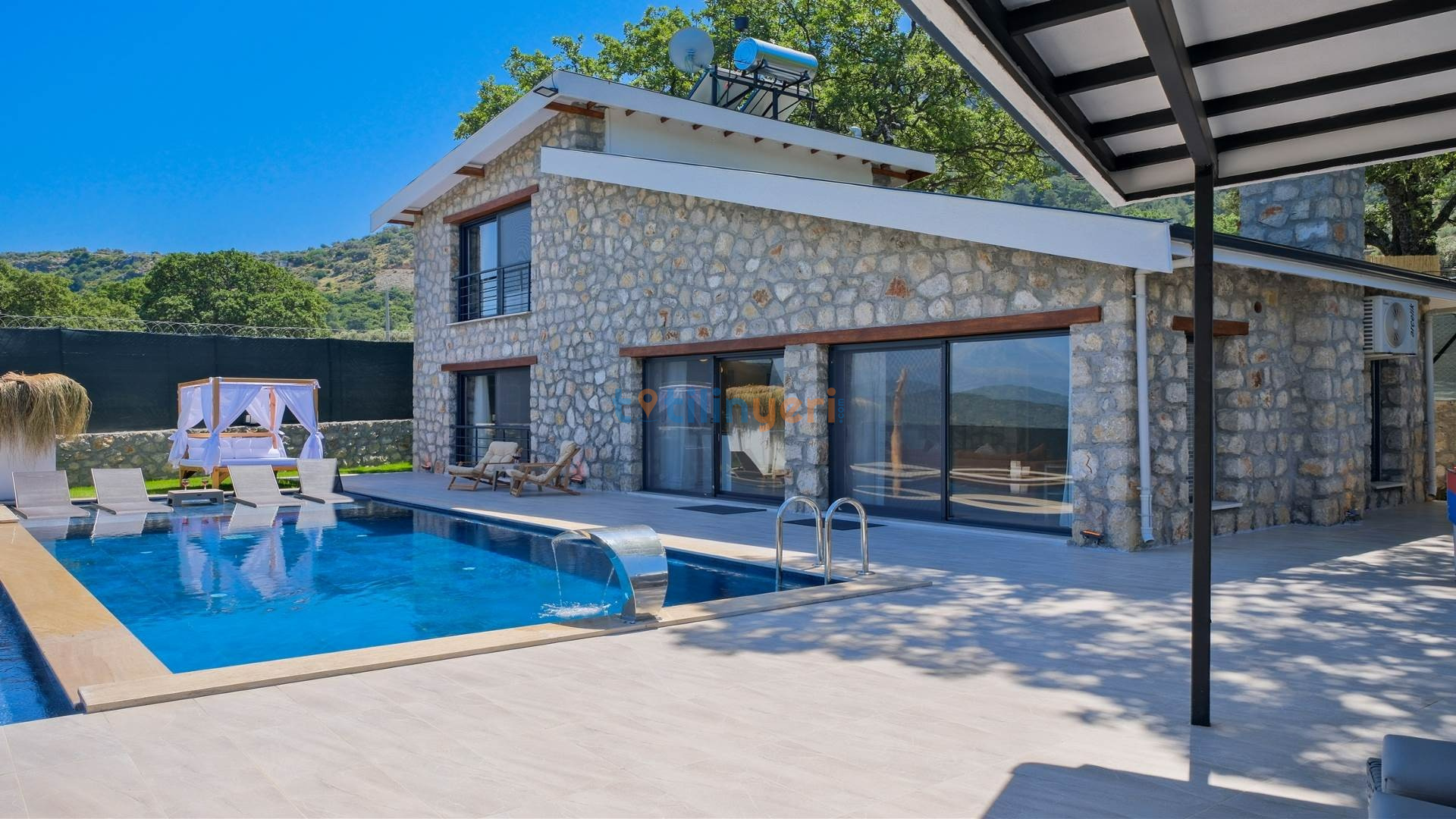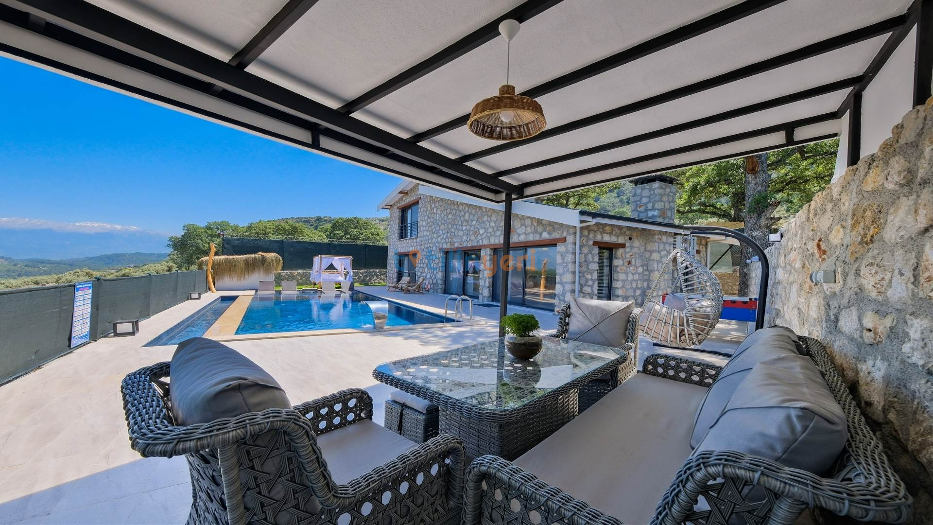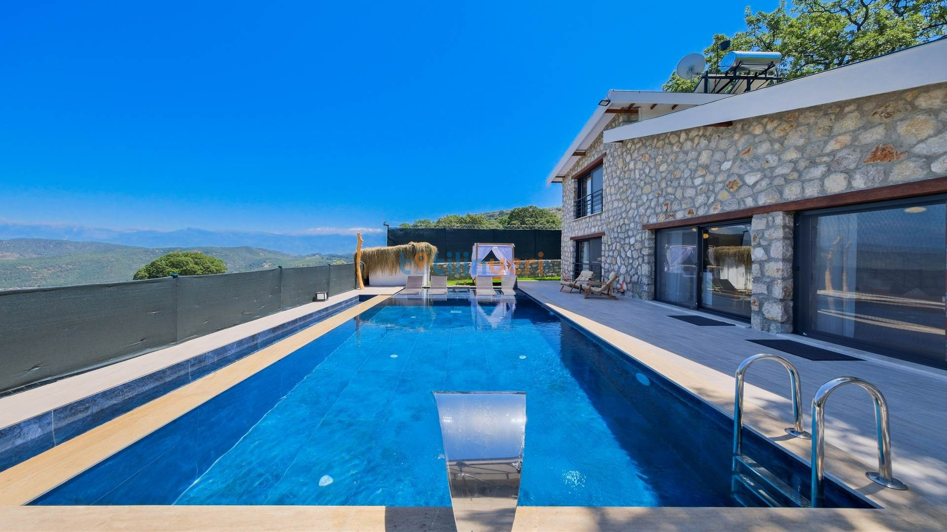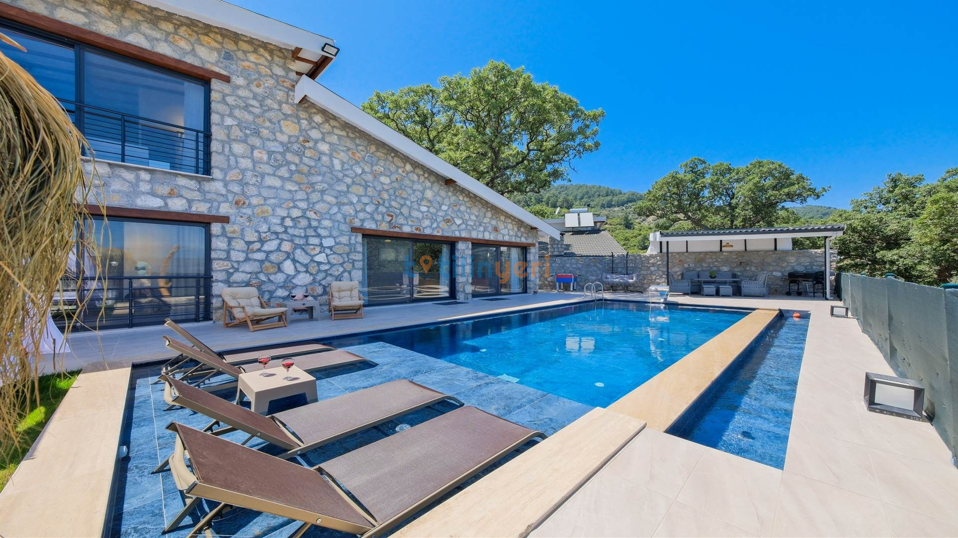 Villamız Fethiye Bozyer bölgesinde , doğa içerisinde Mendos dağının eteğinde, çam ağaçları ve zeytin ağaçlarının bulunduğu bir bölgede konumlanmış bir tatil villamızdır. Sezsizlik, sakinlik arayanlar için eşsiz bir yerdir. 2 yatak odası ve 4 kişi konaklama kapasitesine sahiptir. Açık mutfaklı, modern ve kullanışlı bir salon ve salondan havuz kenarına direkt çıkış bulunmaktadır. Keyifli bir tatil geçirebilmeniz için her türlü detayın düşünüldüğü villamızın kendine ait özel yüzme havuzu ve bahçesi bulunmaktadır. Köy yerleşim alanına 500 mt. mesafededir. Çevre yoluna 3 km mesafededir.