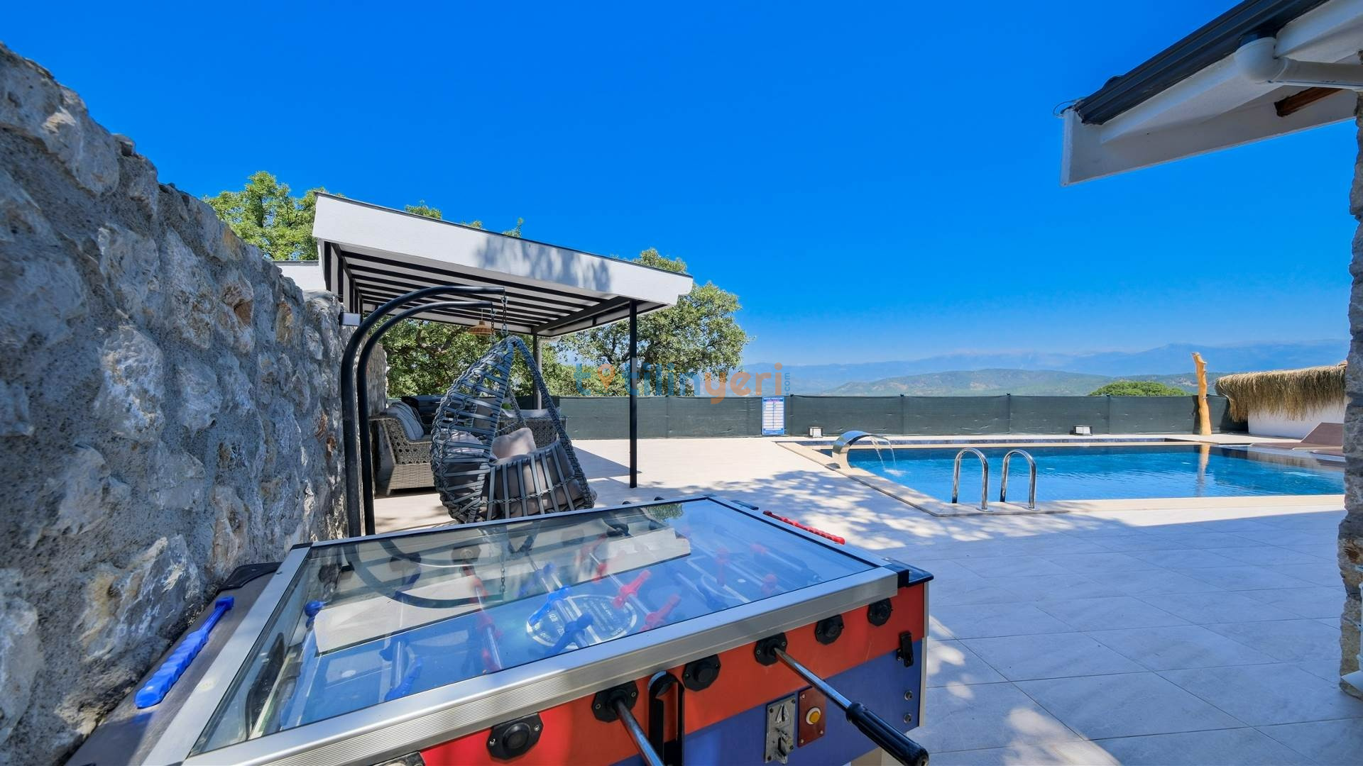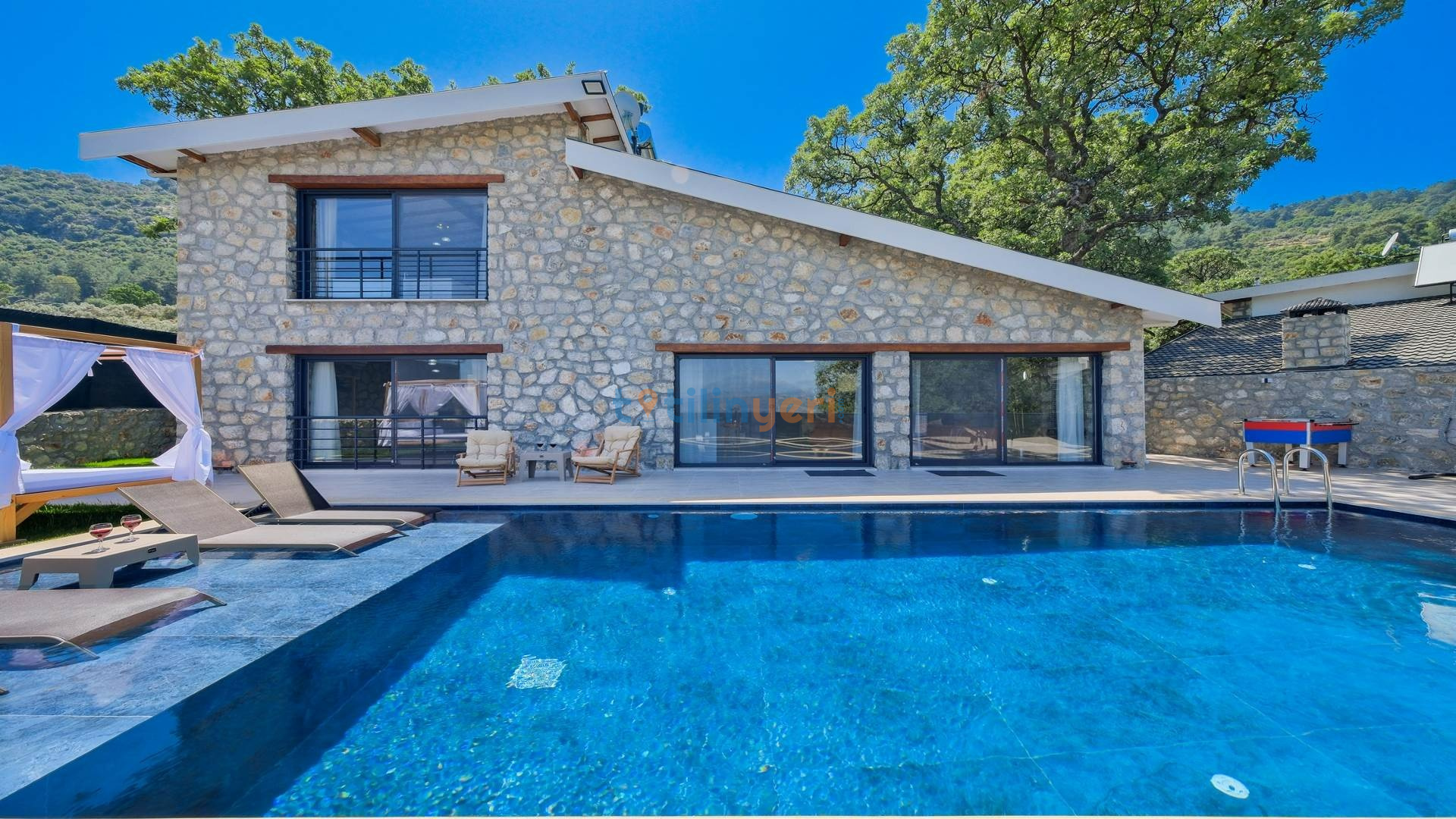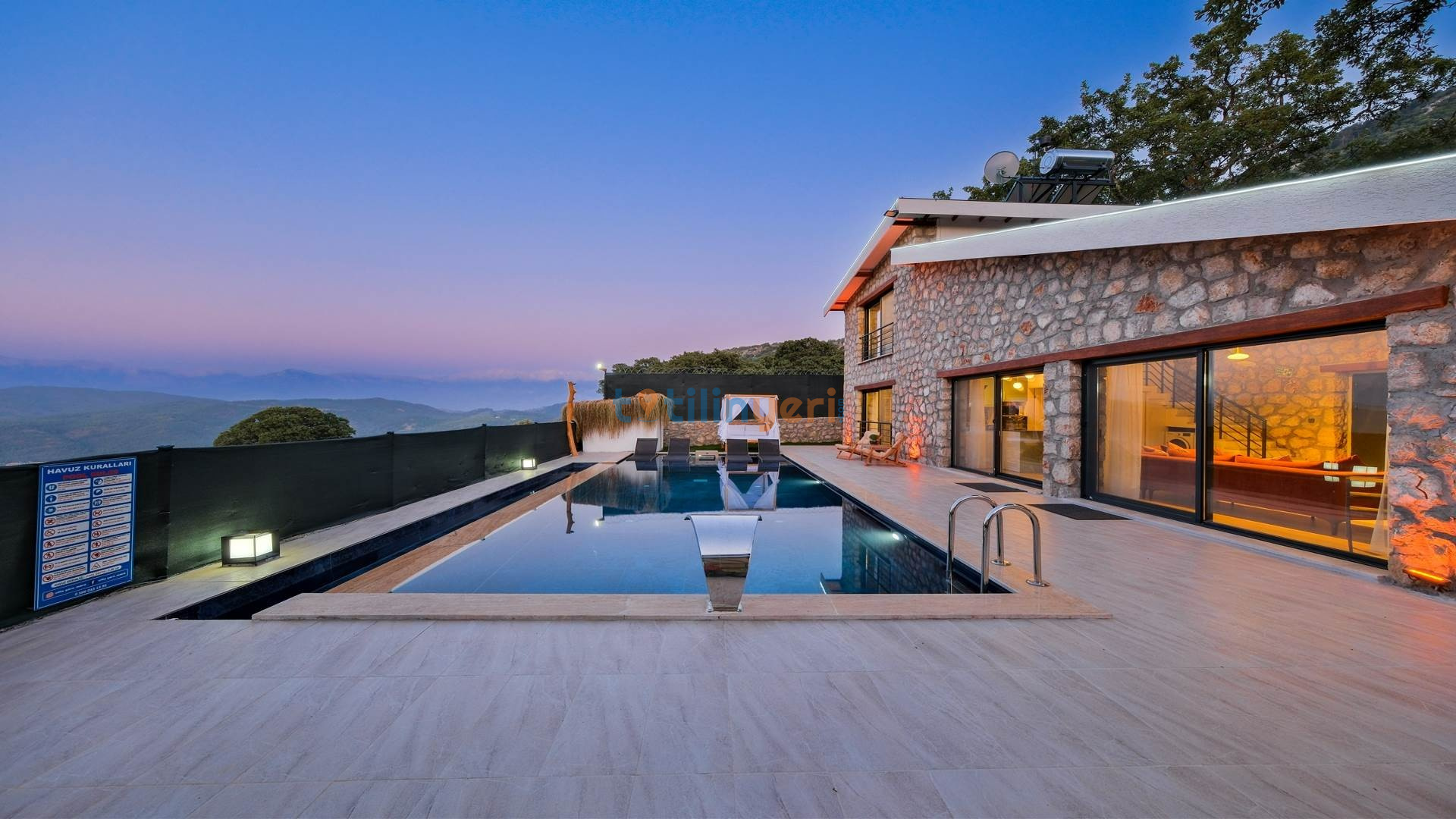 Villamız Fethiye Bozyer bölgesinde , doğa içerisinde Mendos dağının eteğinde, çam ağaçları ve zeytin ağaçlarının bulunduğu bir bölgede konumlanmış bir tatil villamızdır. Sezsizlik, sakinlik arayanlar için eşsiz bir yerdir. 2 yatak odası ve 4 kişi konaklama kapasitesine sahiptir. Açık mutfaklı, modern ve kullanışlı bir salon ve salondan havuz kenarına direkt çıkış bulunmaktadır. Keyifli bir tatil geçirebilmeniz için her türlü detayın düşünüldüğü villamızın kendine ait özel yüzme havuzu ve bahçesi bulunmaktadır. Köy yerleşim alanına 500 mt. mesafededir. Çevre yoluna 3 km mesafededir.
