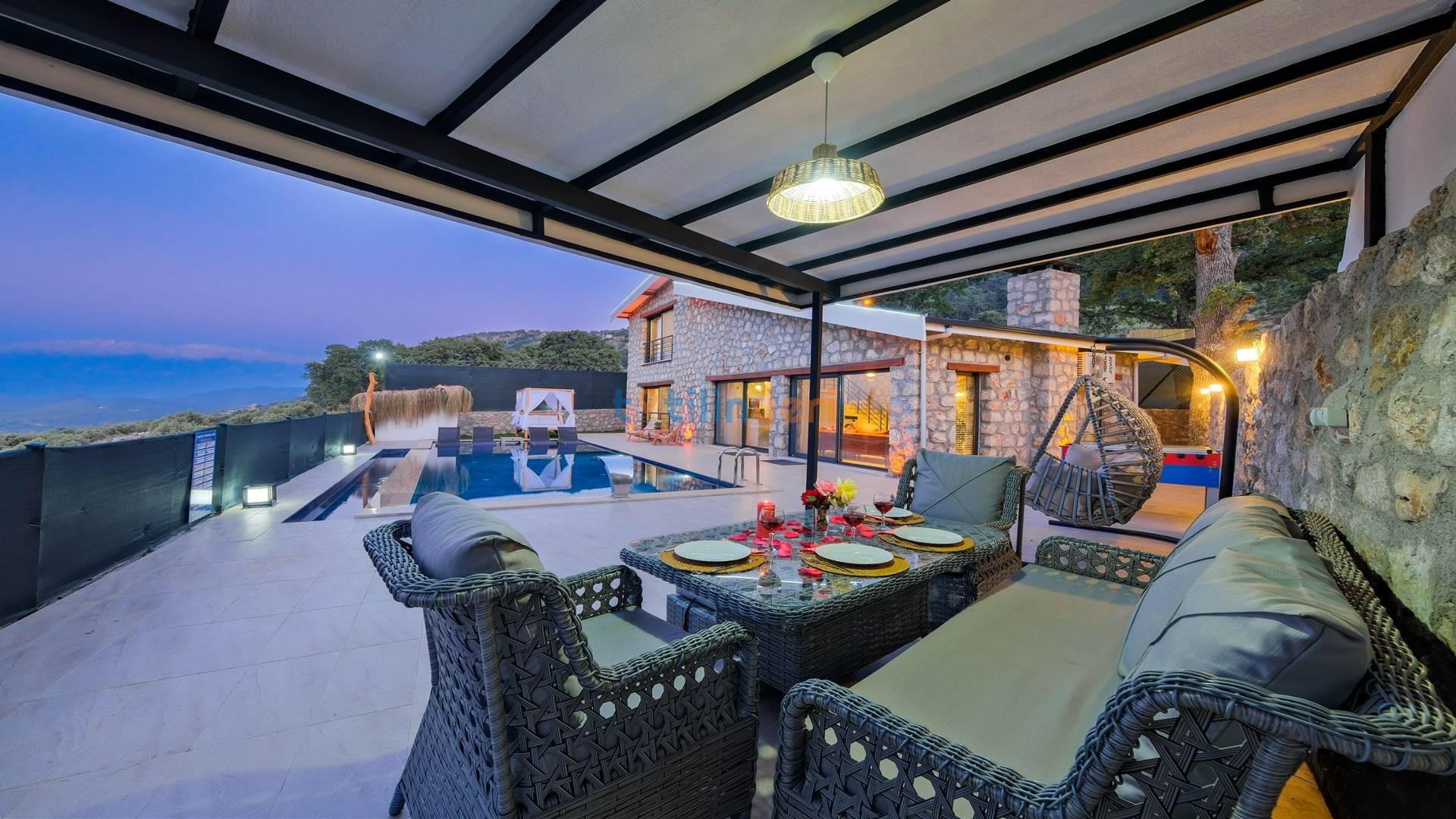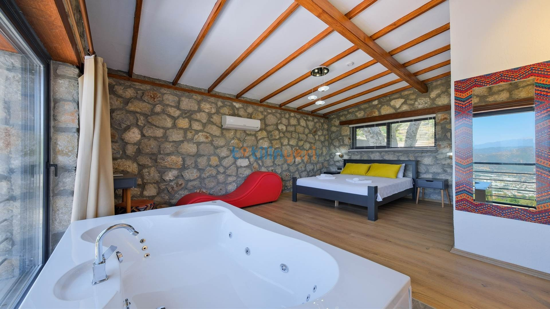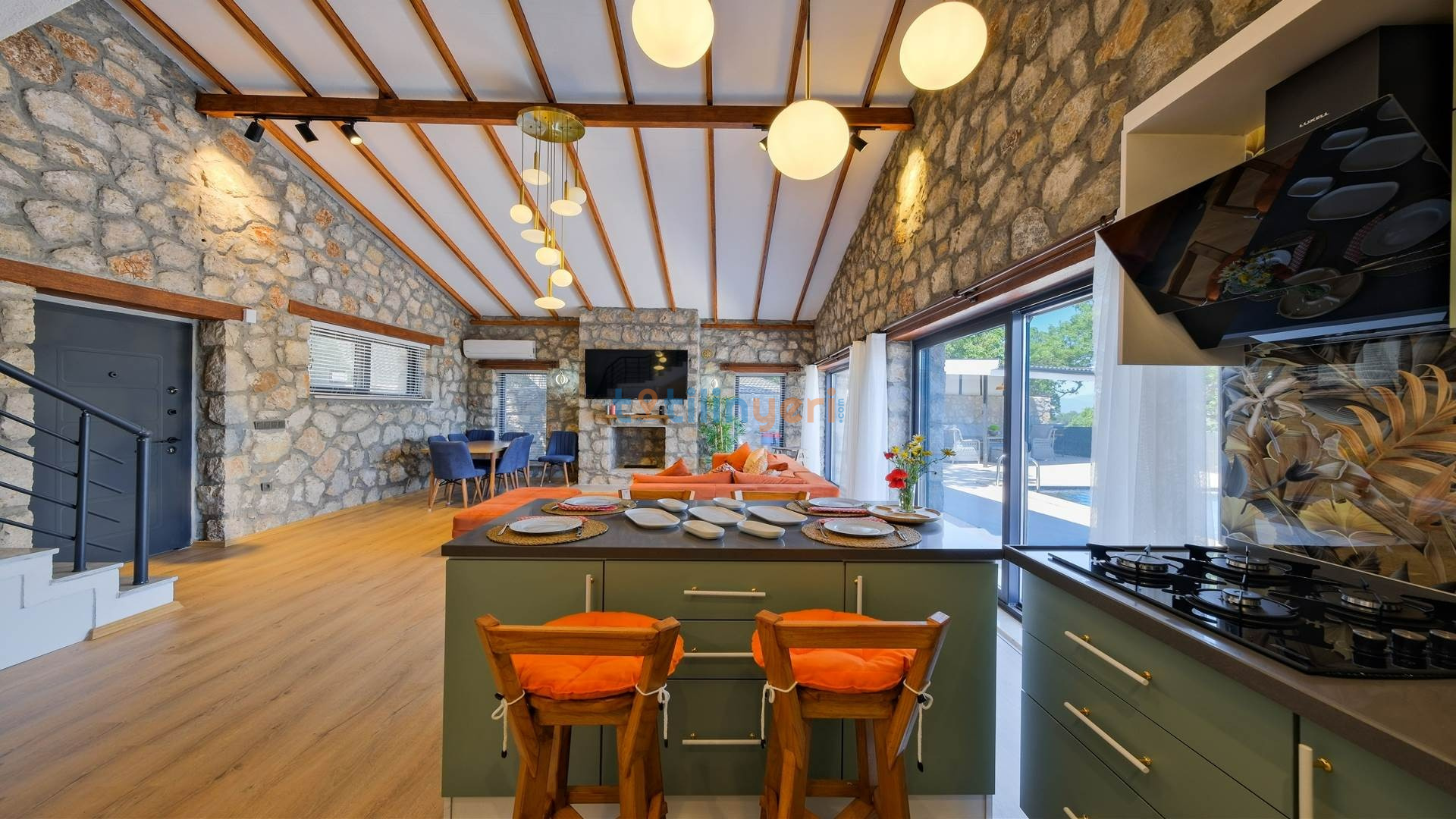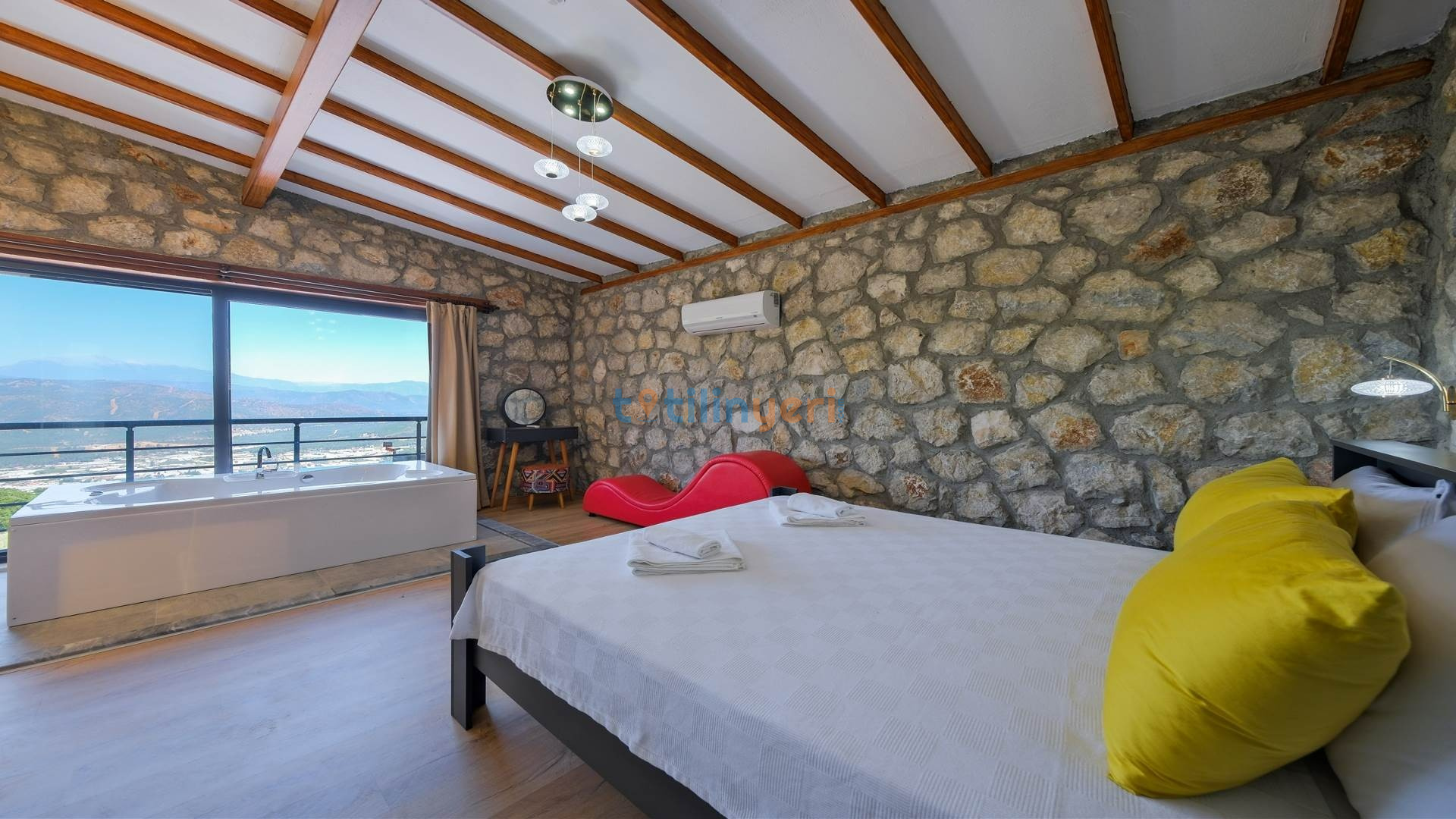 Villamız Fethiye Bozyer bölgesinde , doğa içerisinde Mendos dağının eteğinde, çam ağaçları ve zeytin ağaçlarının bulunduğu bir bölgede konumlanmış bir tatil villamızdır. Sezsizlik, sakinlik arayanlar için eşsiz bir yerdir. 2 yatak odası ve 4 kişi konaklama kapasitesine sahiptir. Açık mutfaklı, modern ve kullanışlı bir salon ve salondan havuz kenarına direkt çıkış bulunmaktadır. Keyifli bir tatil geçirebilmeniz için her türlü detayın düşünüldüğü villamızın kendine ait özel yüzme havuzu ve bahçesi bulunmaktadır. Köy yerleşim alanına 500 mt. mesafededir. Çevre yoluna 3 km mesafededir.