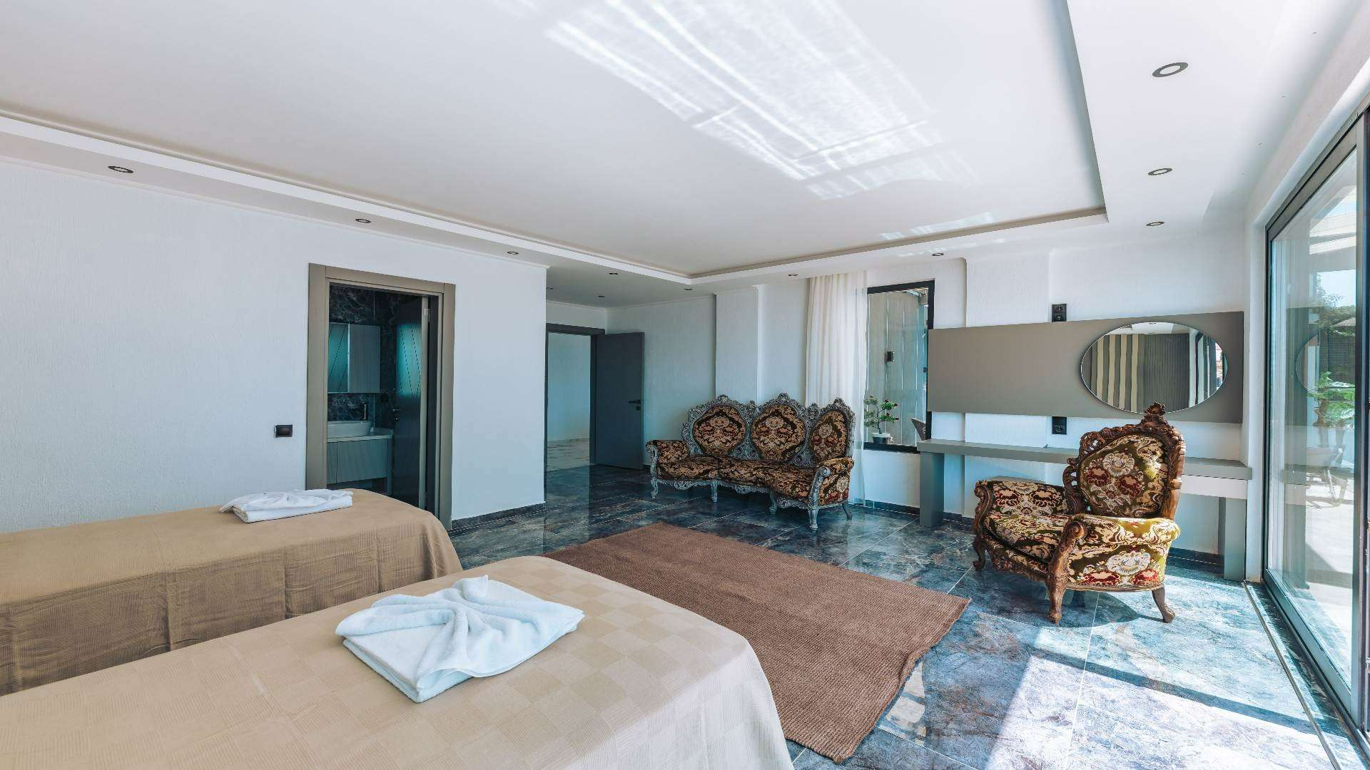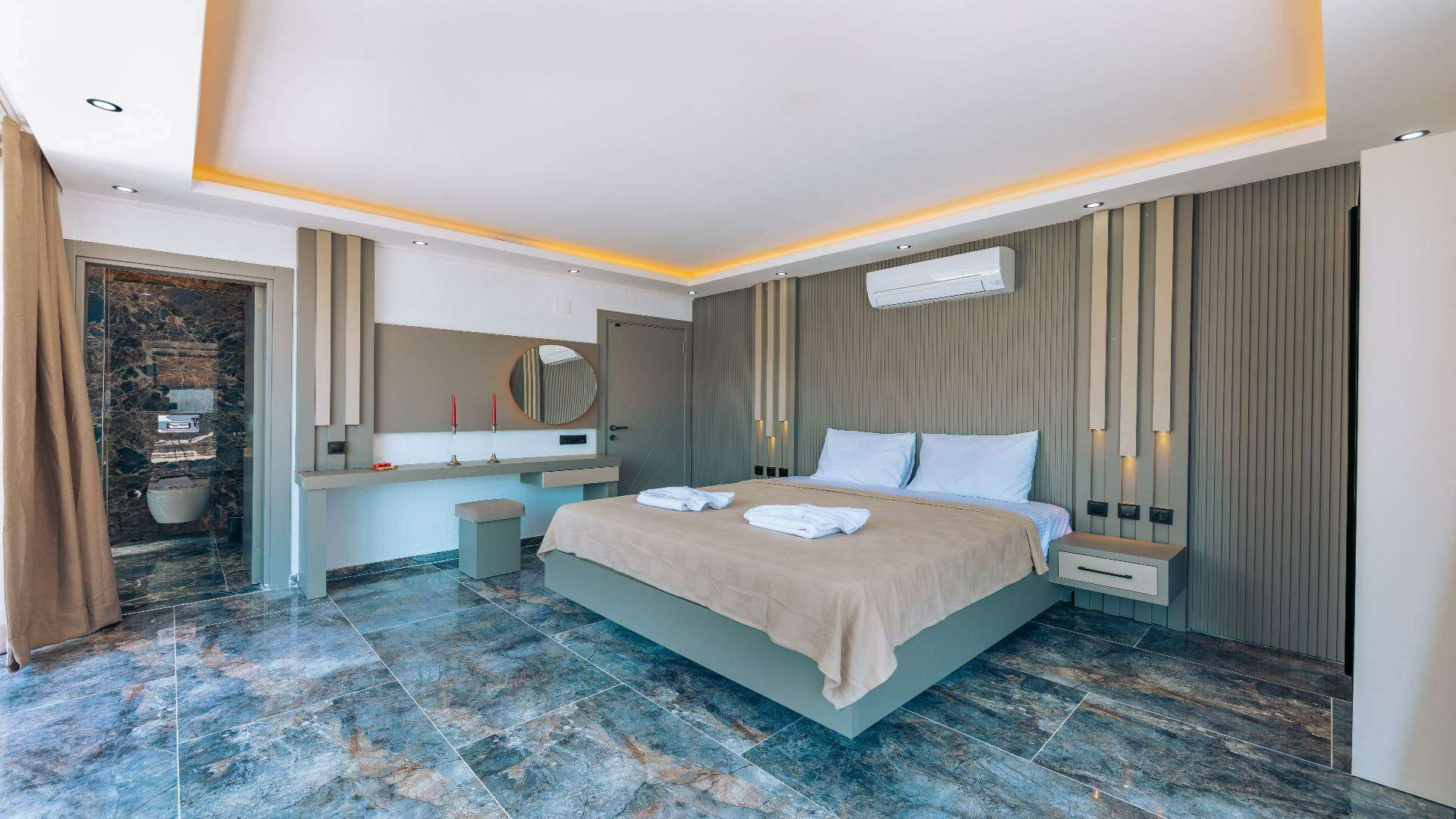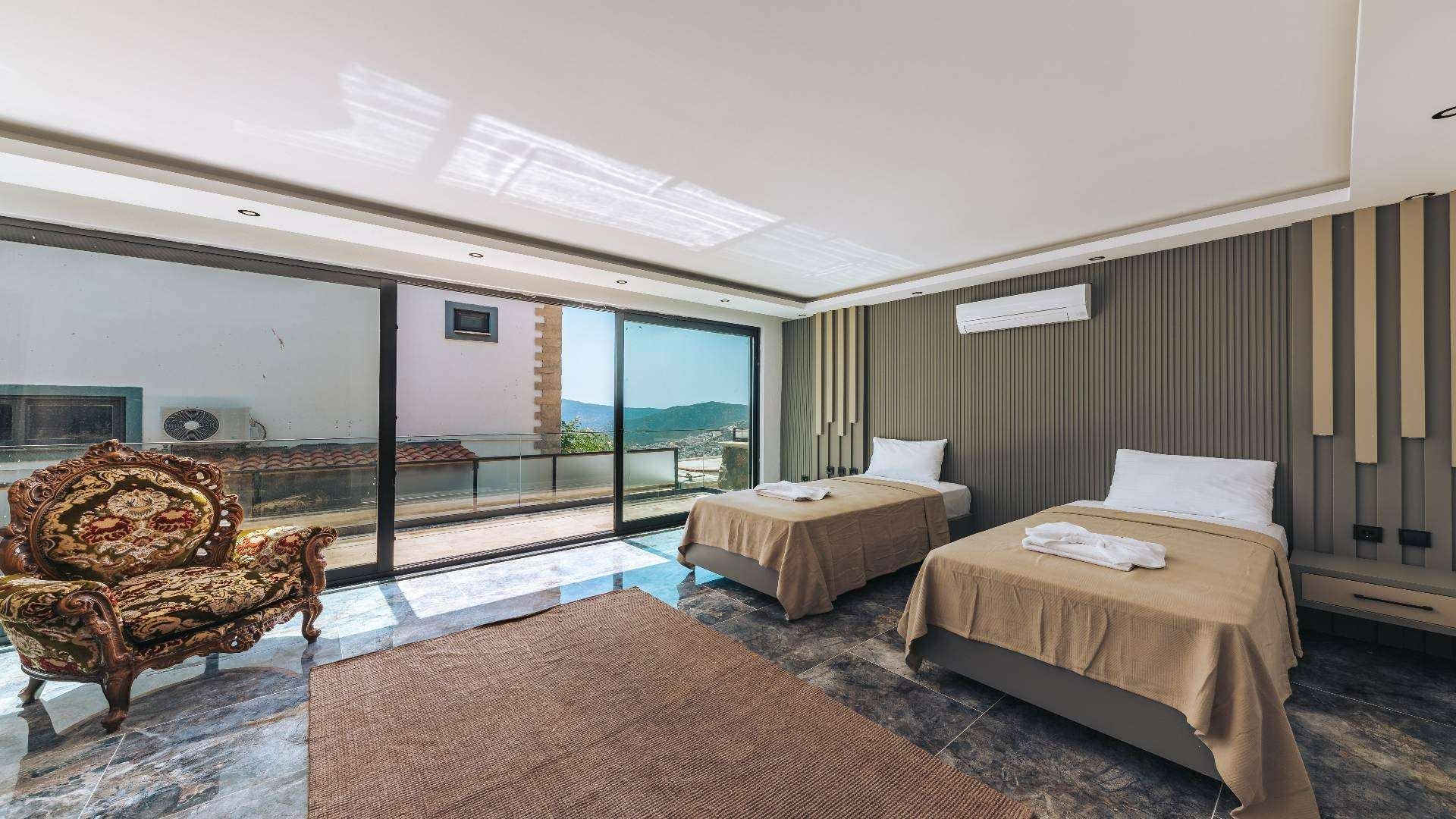 Kalkan'ın Kördere bölgesinde yer alan, 3 yatak odalı, 6 misafir kapasitesi ile geniş aileler ve arkadaş grupları için ideal bir seçenektir. Lüks ve konforun bir arada sunulduğu bu villada özel havuz, bahçe ve geniş yaşam alanları mevcuttur. Doğa manzarası eşliğinde huzurlu bir tatil geçirmek isteyenler misafirlerimiz için oldukça uygun bir villamızd
