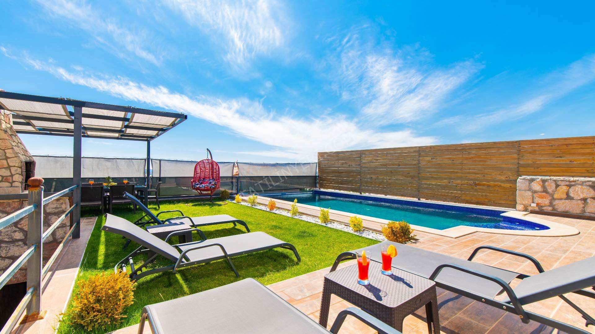 Villa Tierra Deluxe Kalkan / Patara mevkiisinde yer almaktadır. Toplam 2 yatak odası mevcut olup 4 kişilik konaklama kapasitesine sahiptir. Suit yatak odalarında kişiye özel jakuzisi bulunmaktadır. Çekirdek aileler ve balayı çiftlerimiz için ideal bir seçenektir. Havuz ve havuz terasının korunaklı yapıya sahip olmasıyla muhafazakar villalar kategorisine girmektedir. Özel korunaklı havuzu , geniş bahçe alanı, salıncağı, araç otopark yeri mevcuttur. Doğa konumlu yer alan villamızda keyifli dakikalar geçirerek güzel bir tatil geçirebilirsiniz.